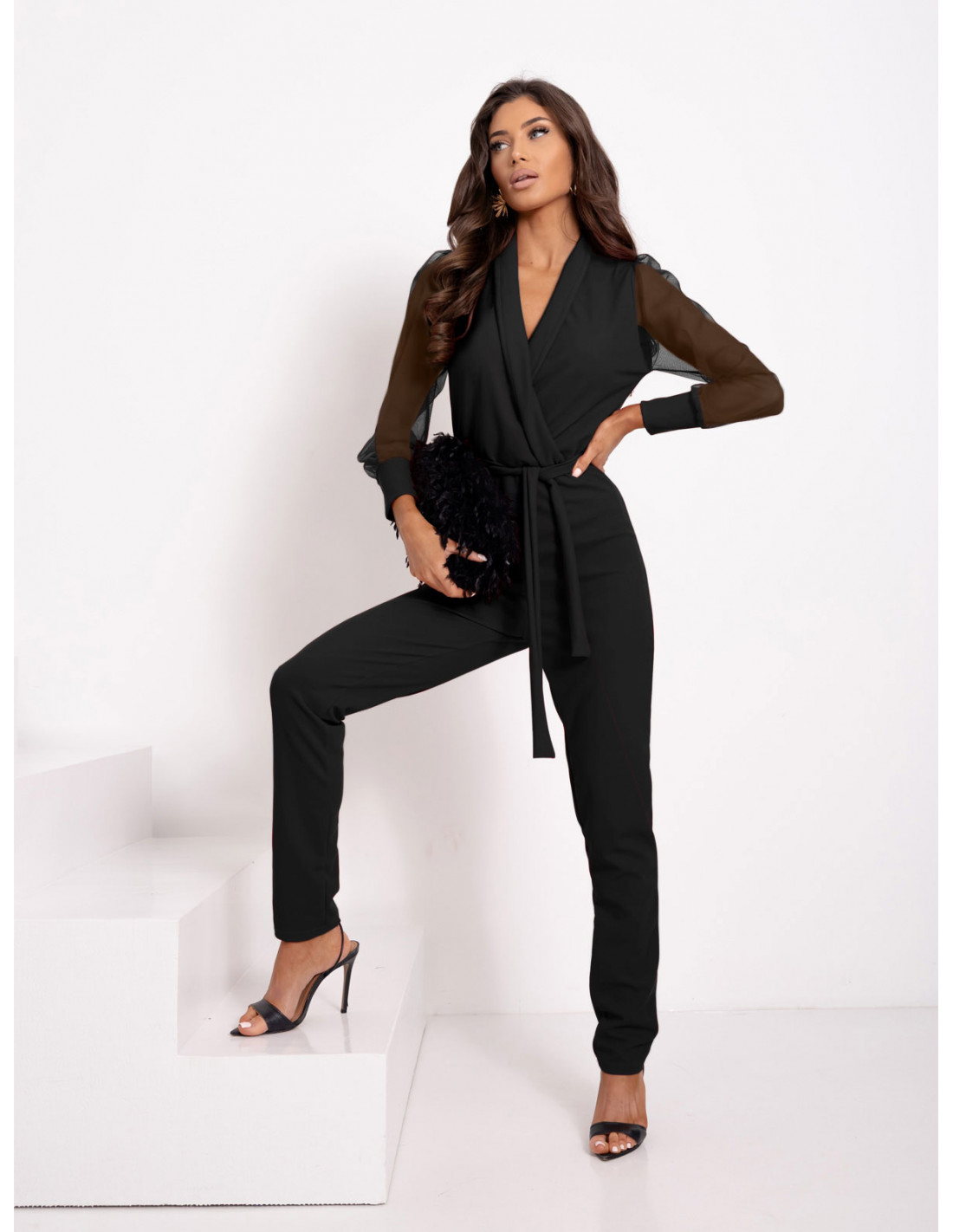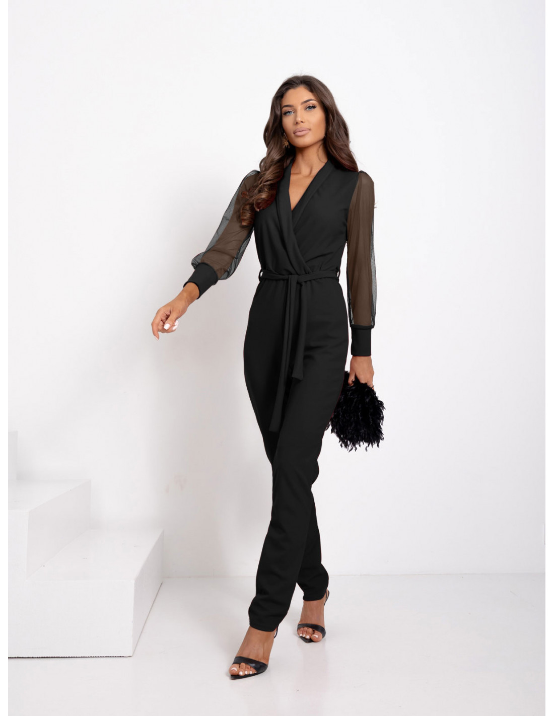 Kombinezon z tiulowymi rękawami NADIA - czarny