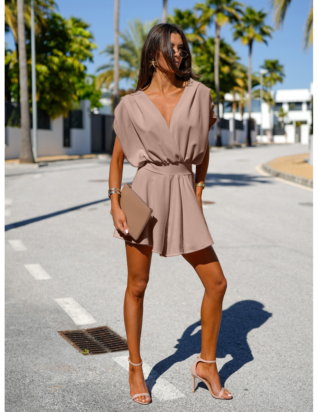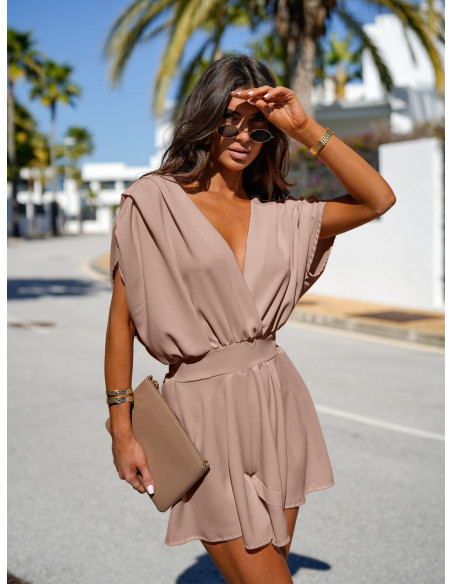 Krótki kombinezon z przekładanym dekoltem OLLI - mocha mousse
