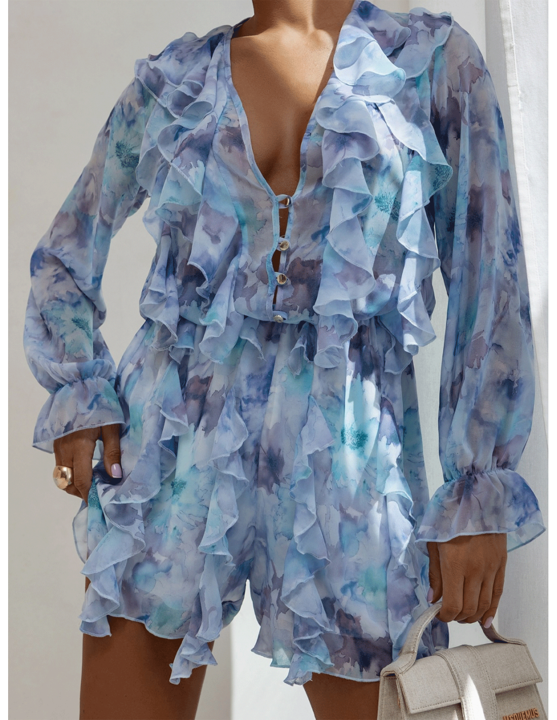 Krótki kombinezon z szyfonu z falbanami ARIELLA - wzór 3