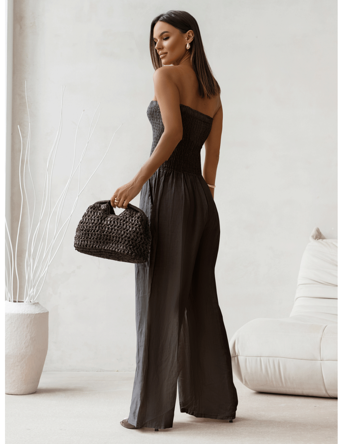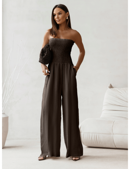 Lniany kombinezon z szerokimi nogawkami MALIA - czekoladowy