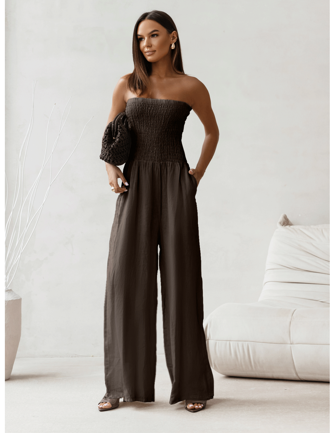 Lniany kombinezon w kolorze czekoladowym to ponadczosowy wybór.