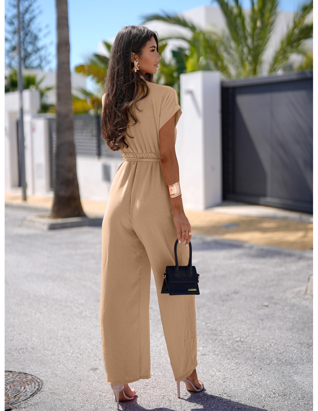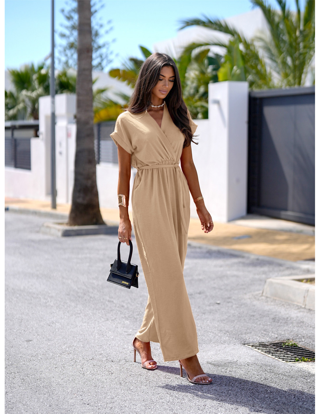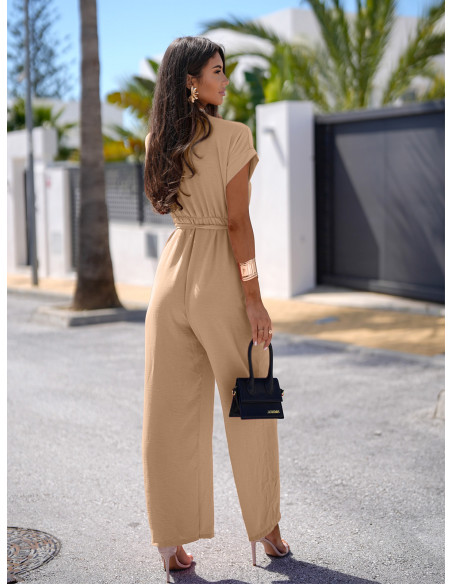 Stylowy kombinezon z szerokimi nogawkami KAMAYA - beżowy