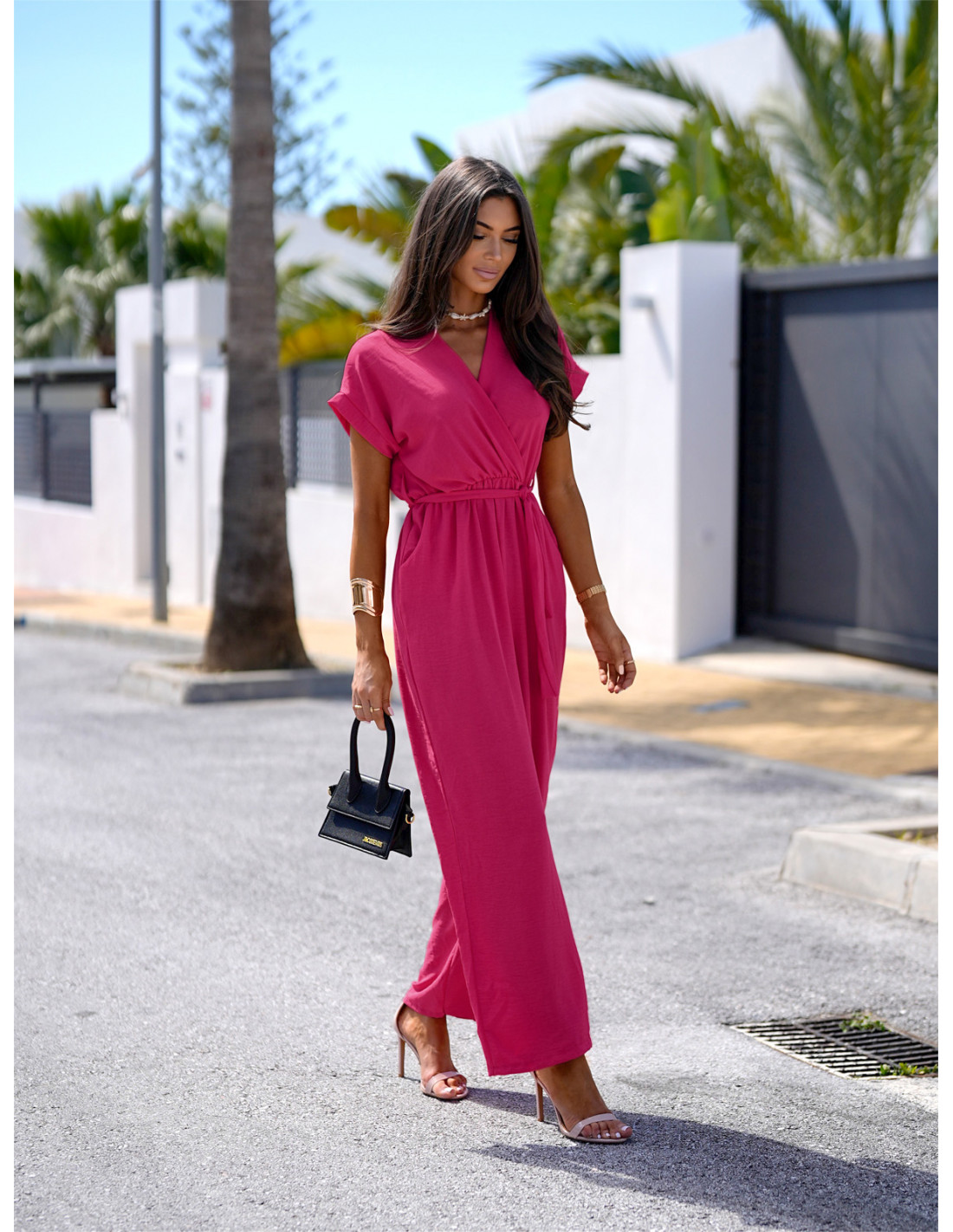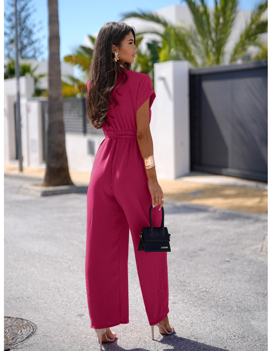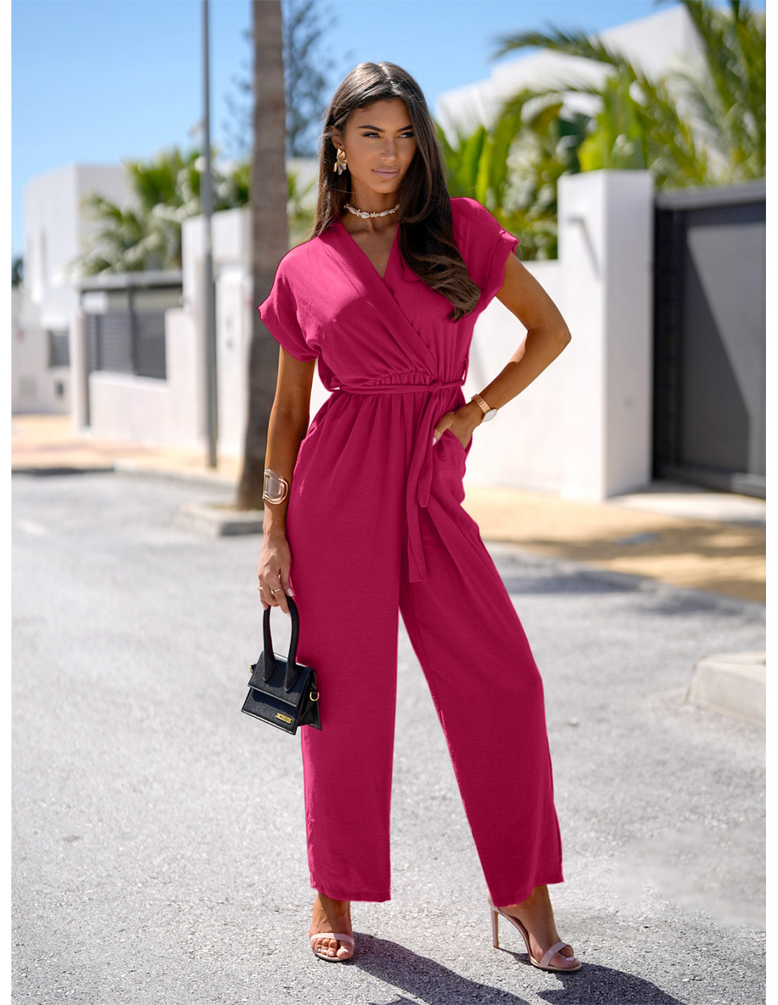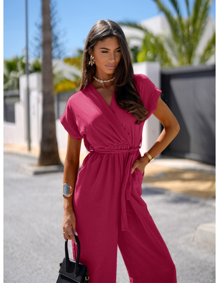 Stylowy kombinezon z szerokimi nogawkami KAMAYA - fuksjowy