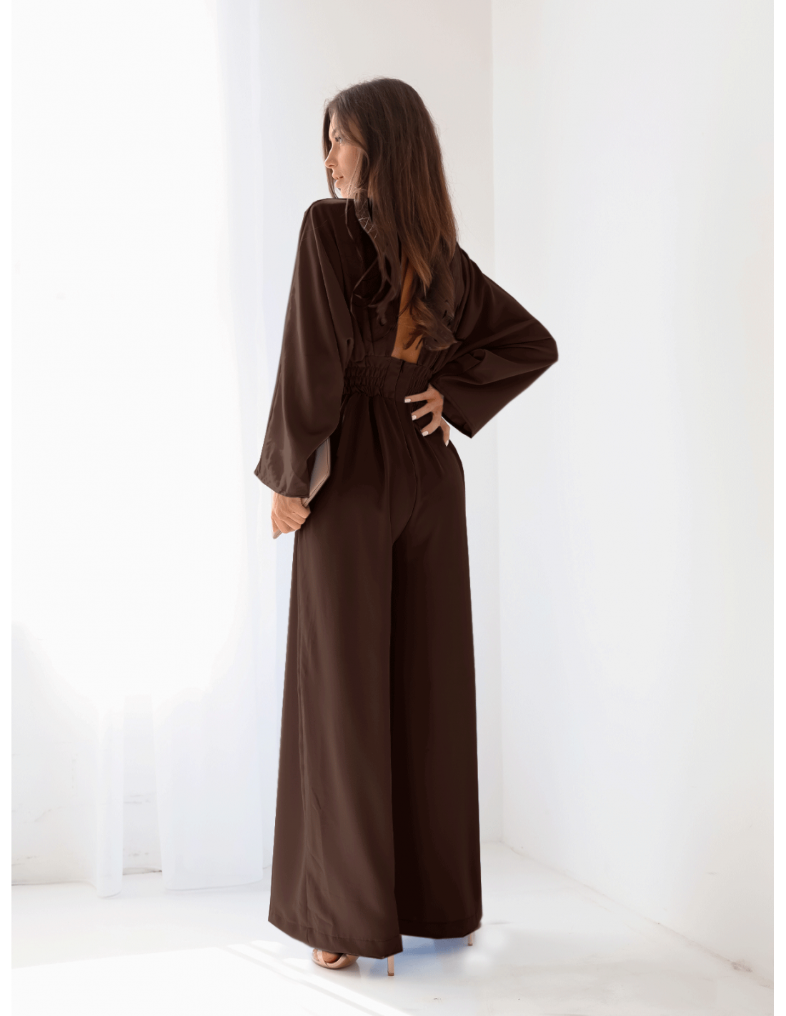 Kombinezon z szerokimi nogawkami LACEY - czekoladowy