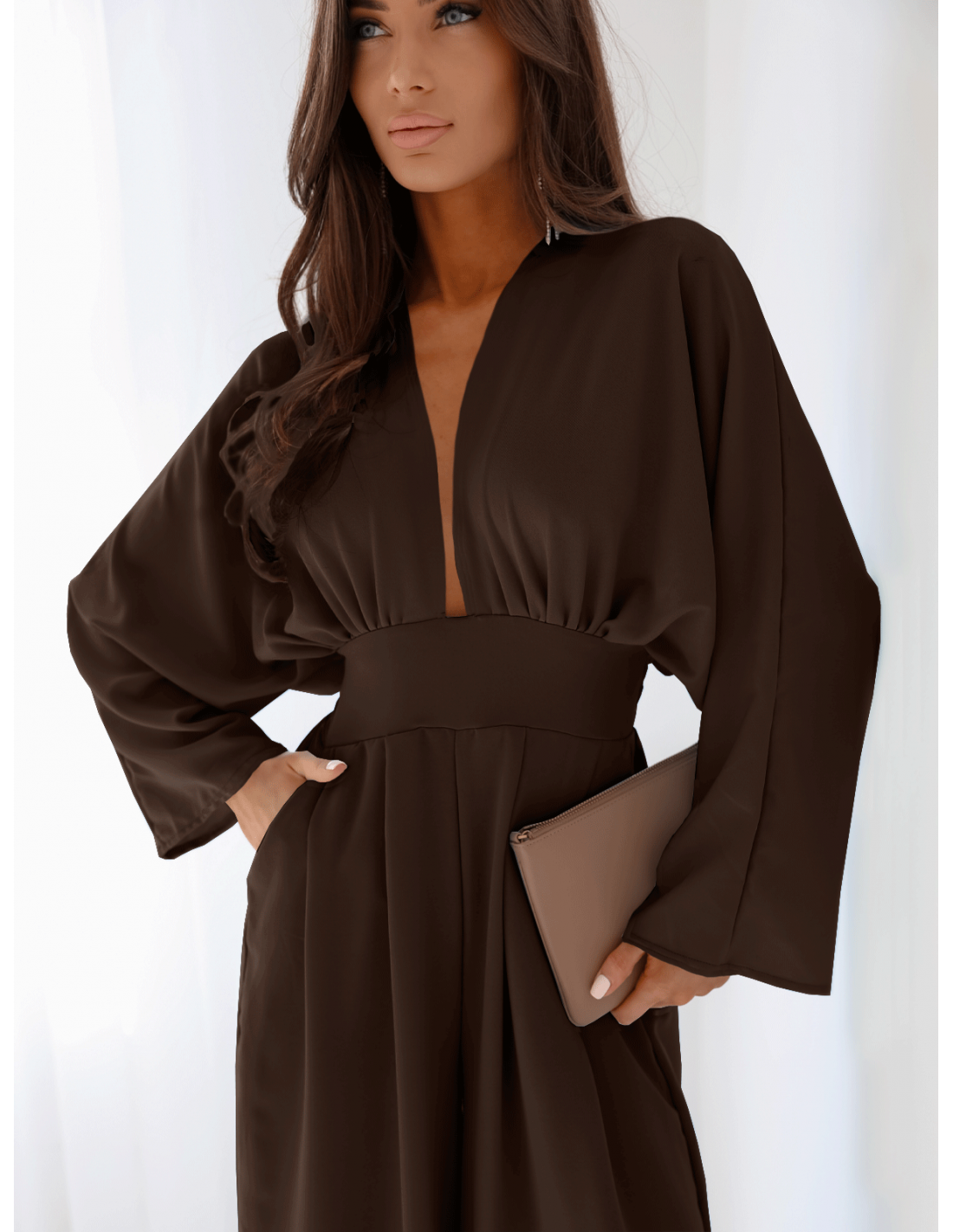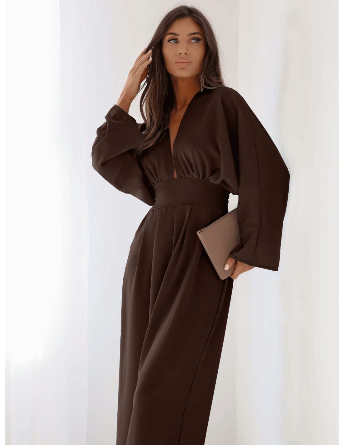 Czekoladowy kombinezon to elegancki wybór na różne okazję.