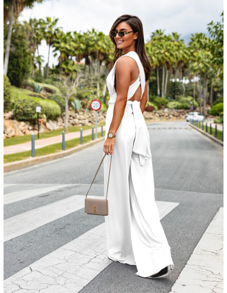 Multi kombinezon z szerokimi nogawkami - ELEGANCE - biały
