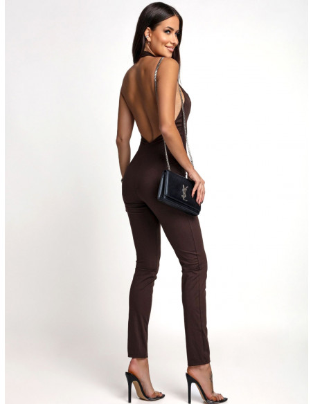 Dopasowany kombinezon z odkrytymi plecami ALECIA - czekoladowy