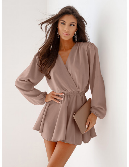 WP Krótki kombinezon z przekładanym dekoltem - mocha mousse
