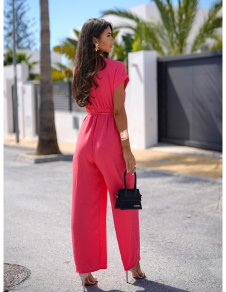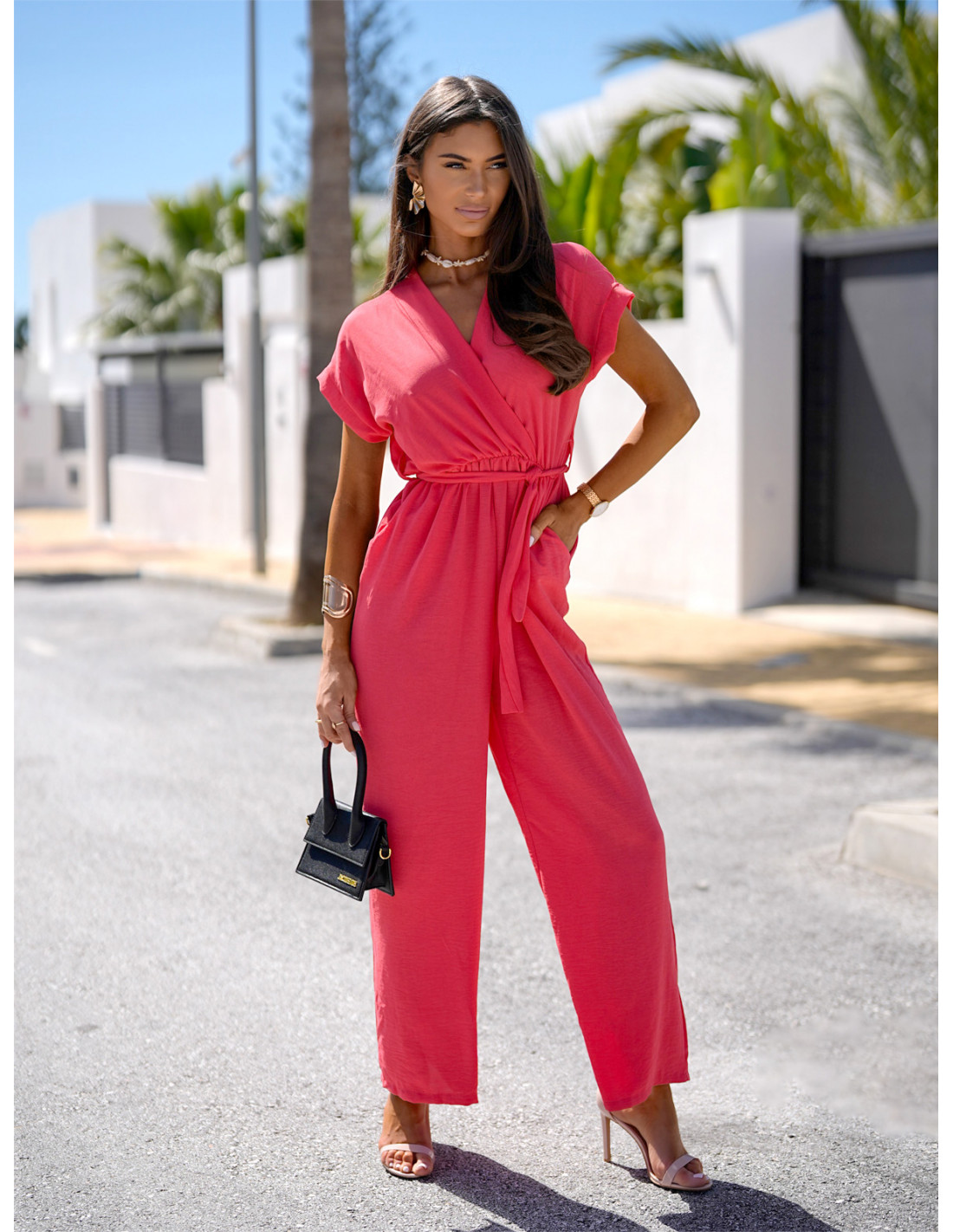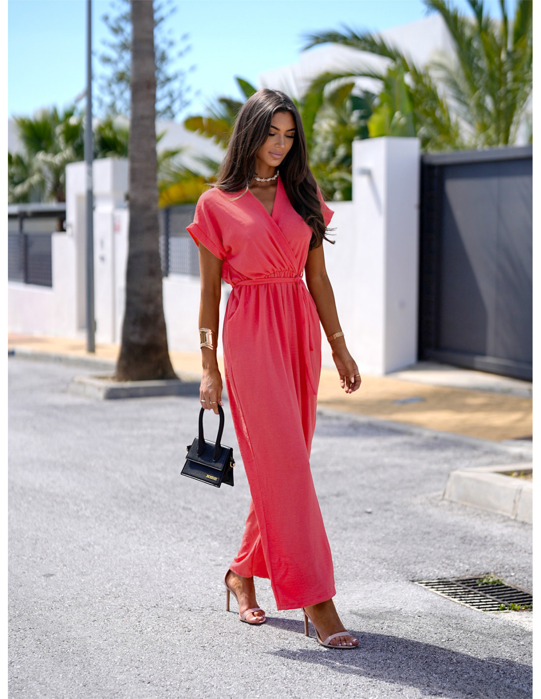 Ten lekki, powiewny kombinezon w koralowym odcieniu to kwintesencja letniej elegancji i wygody.