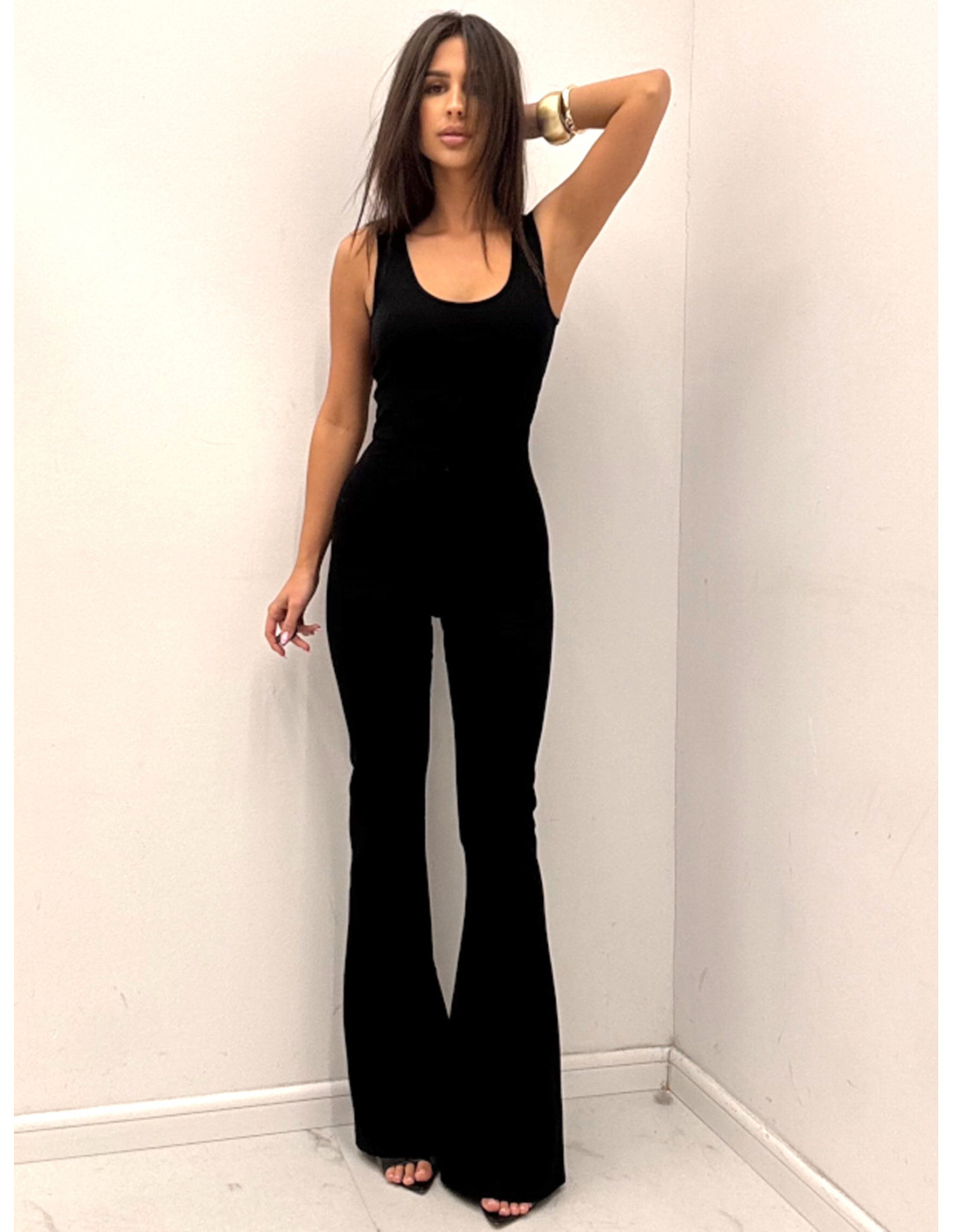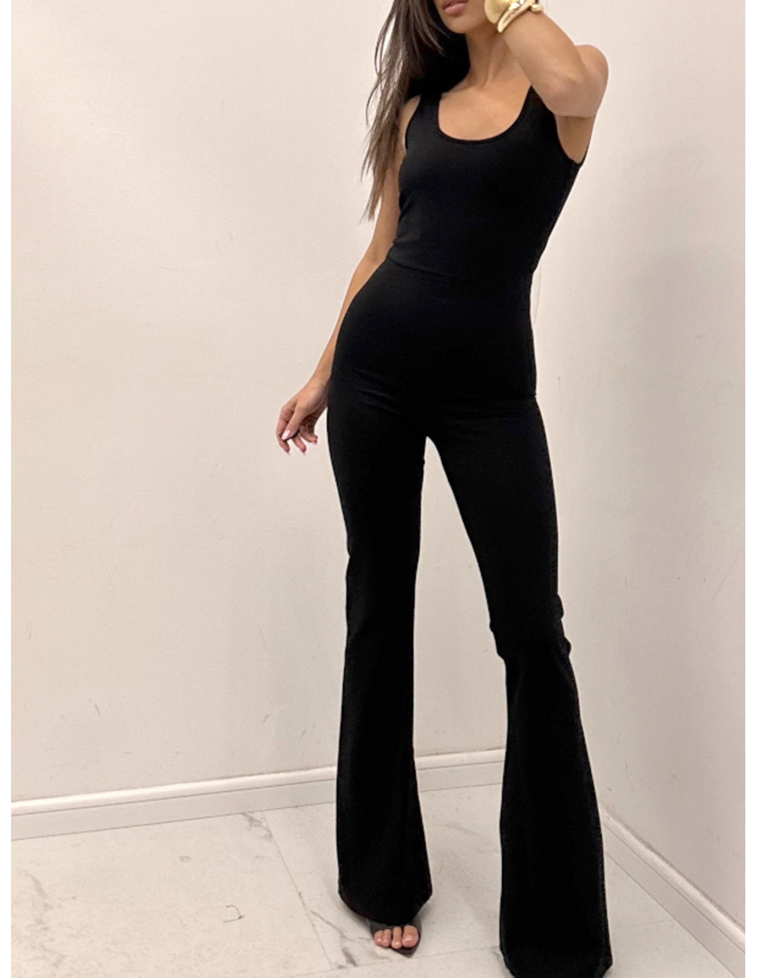 Dopasowany kombinezon z szerokimi nogawkami KASTOJA - czarny