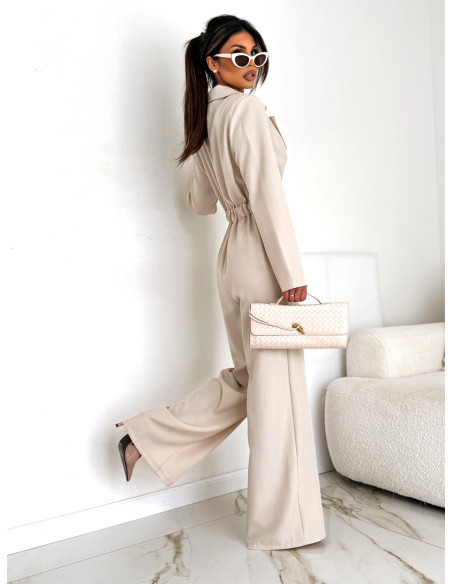 Elegancki kombinezon z szerokimi nogawkami ZIJON - beżowy