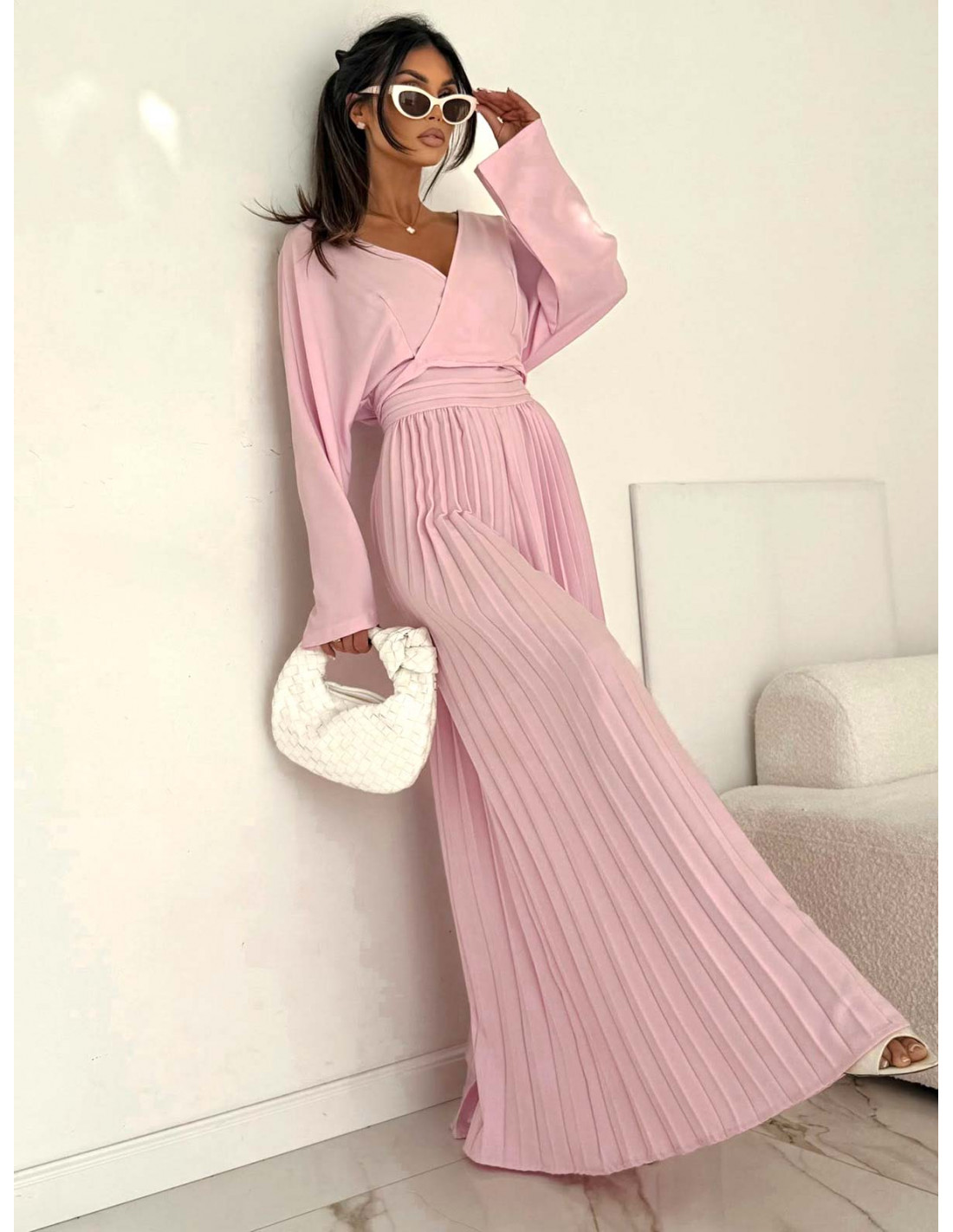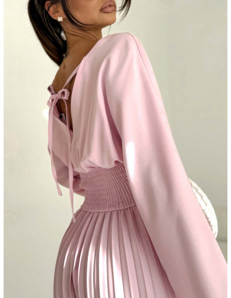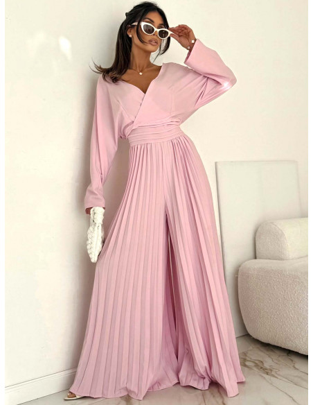 Elegancki kombinezon z plisowanymi nogawkami ADRA - pudrowy róż