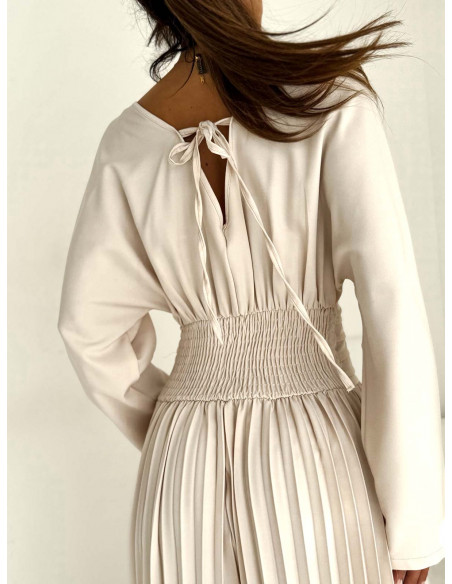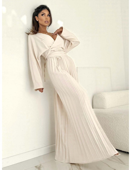 Elegancki kombinezon z plisowanymi nogawkami ADRA - beżowy