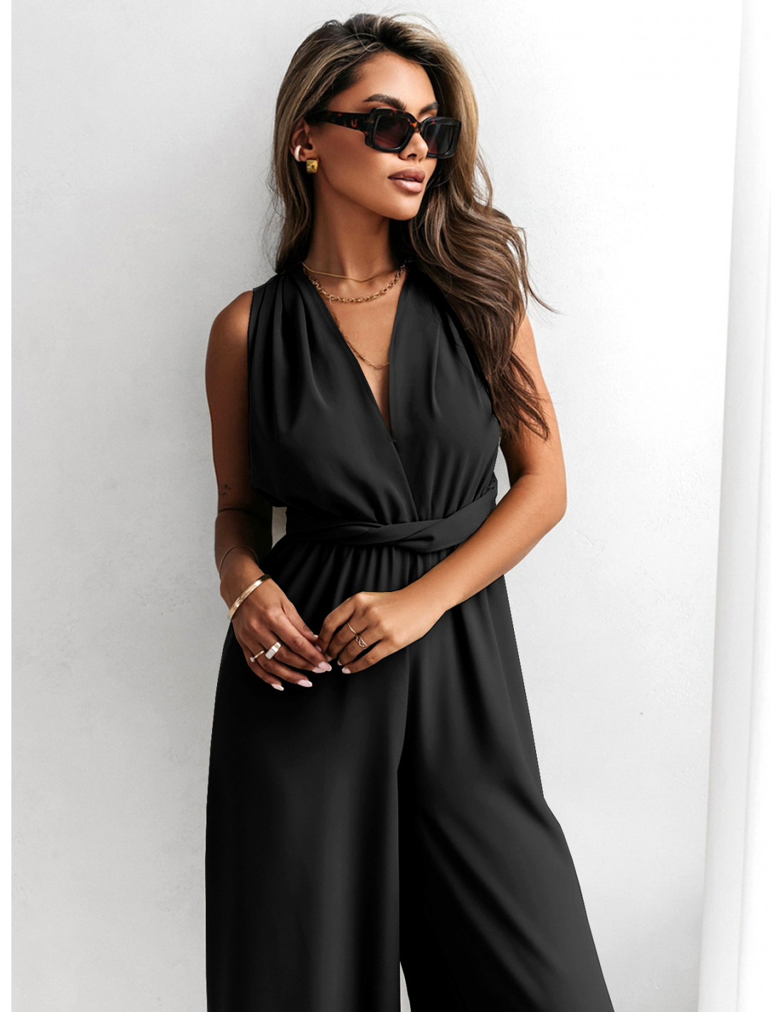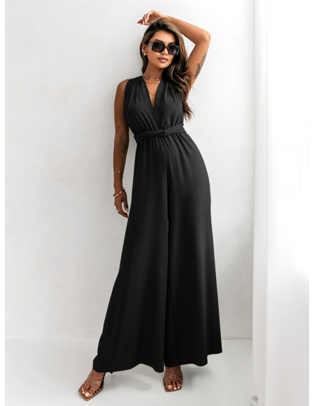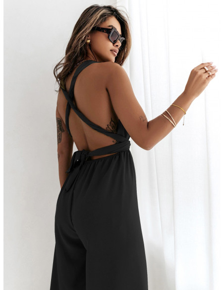 Multi kombinezon z szerokimi nogawkami - ELEGANCE - czarny