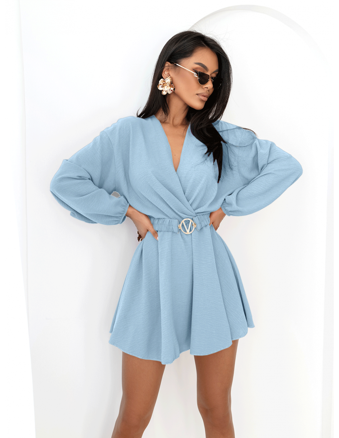Krótki kombinezon z przekładanym dekoltem NEGRIS - błękitny