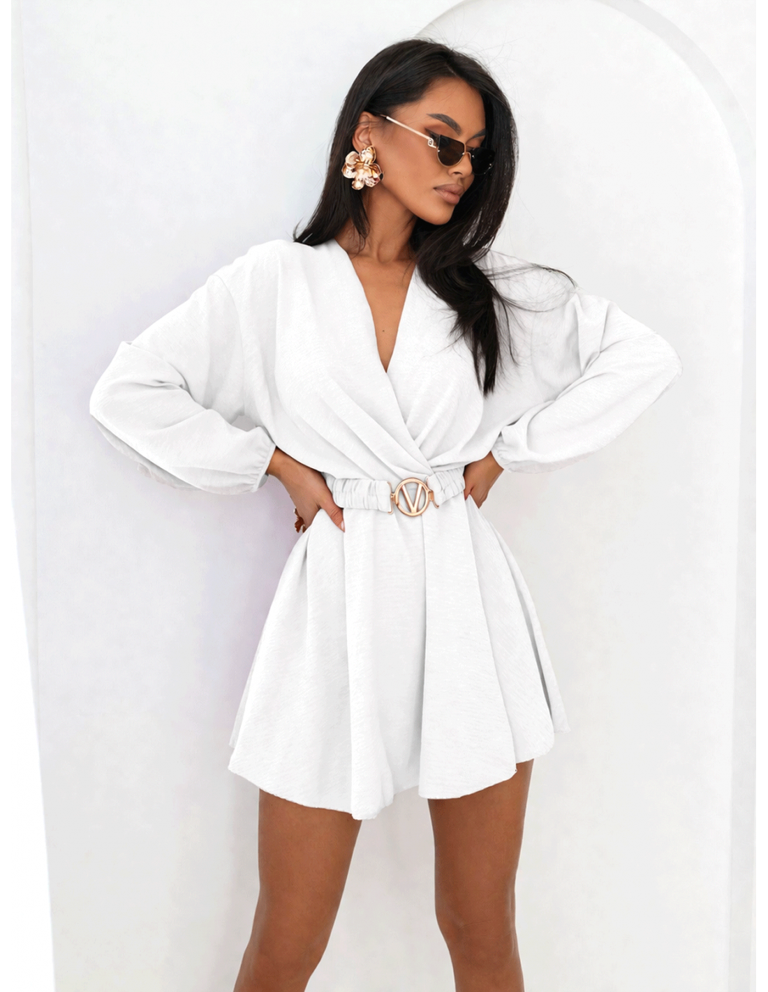 Krótki kombinezon z przekładanym dekoltem NEGRIS - biały