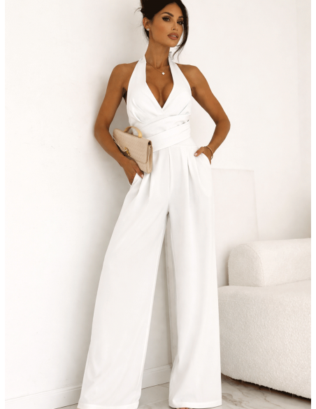 Wiskozowy kombinezon z odkrytymi ramionami RHIAN - biały