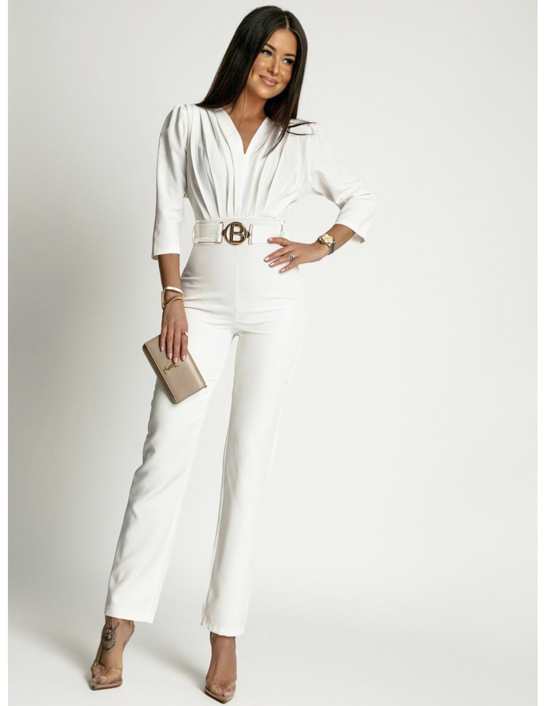 Elegancki dopasowany kombinezon OTIA - biały