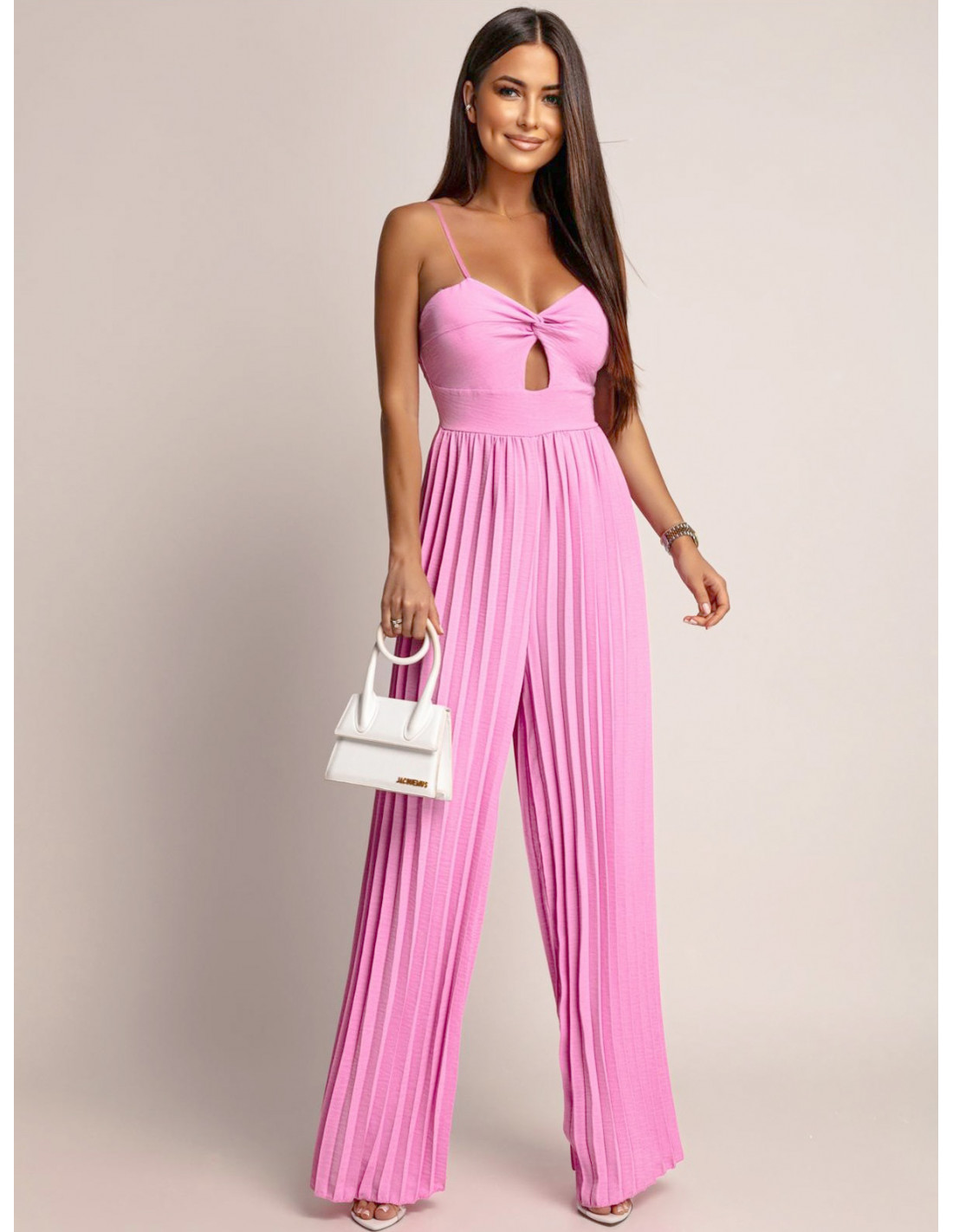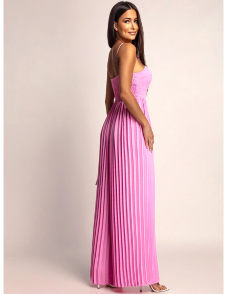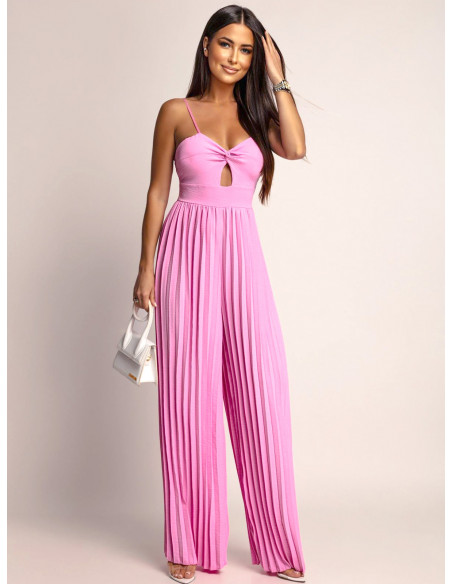 Stylowy kombinezon z plisowanym dołem LUANI - pudrowy róż