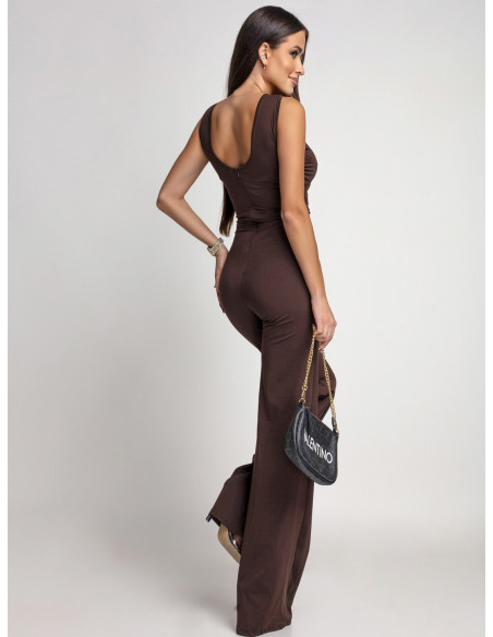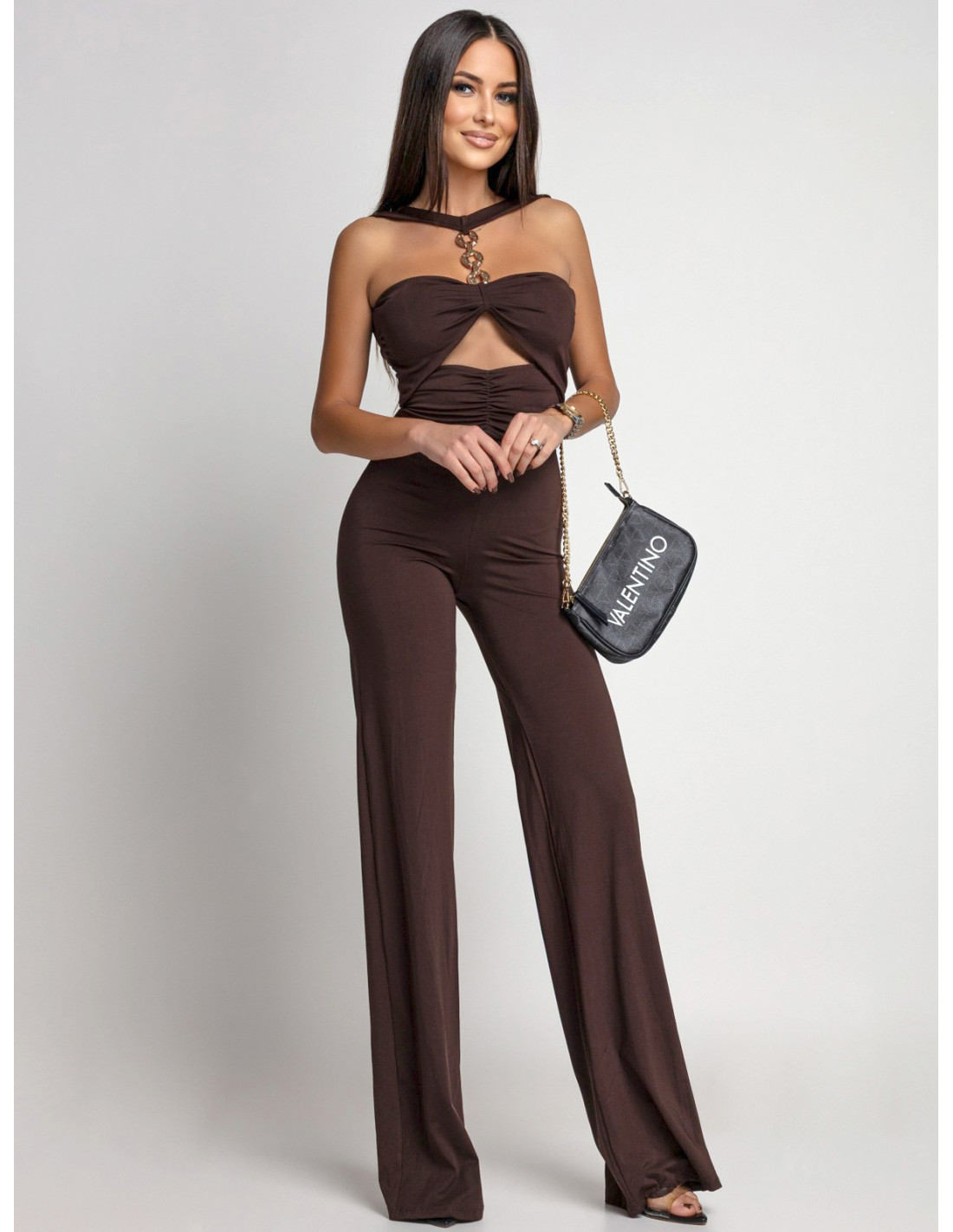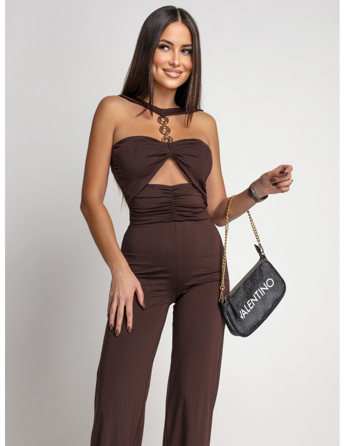 Dopasowany kombinezon z wycięciami FERRY - czekoladowy