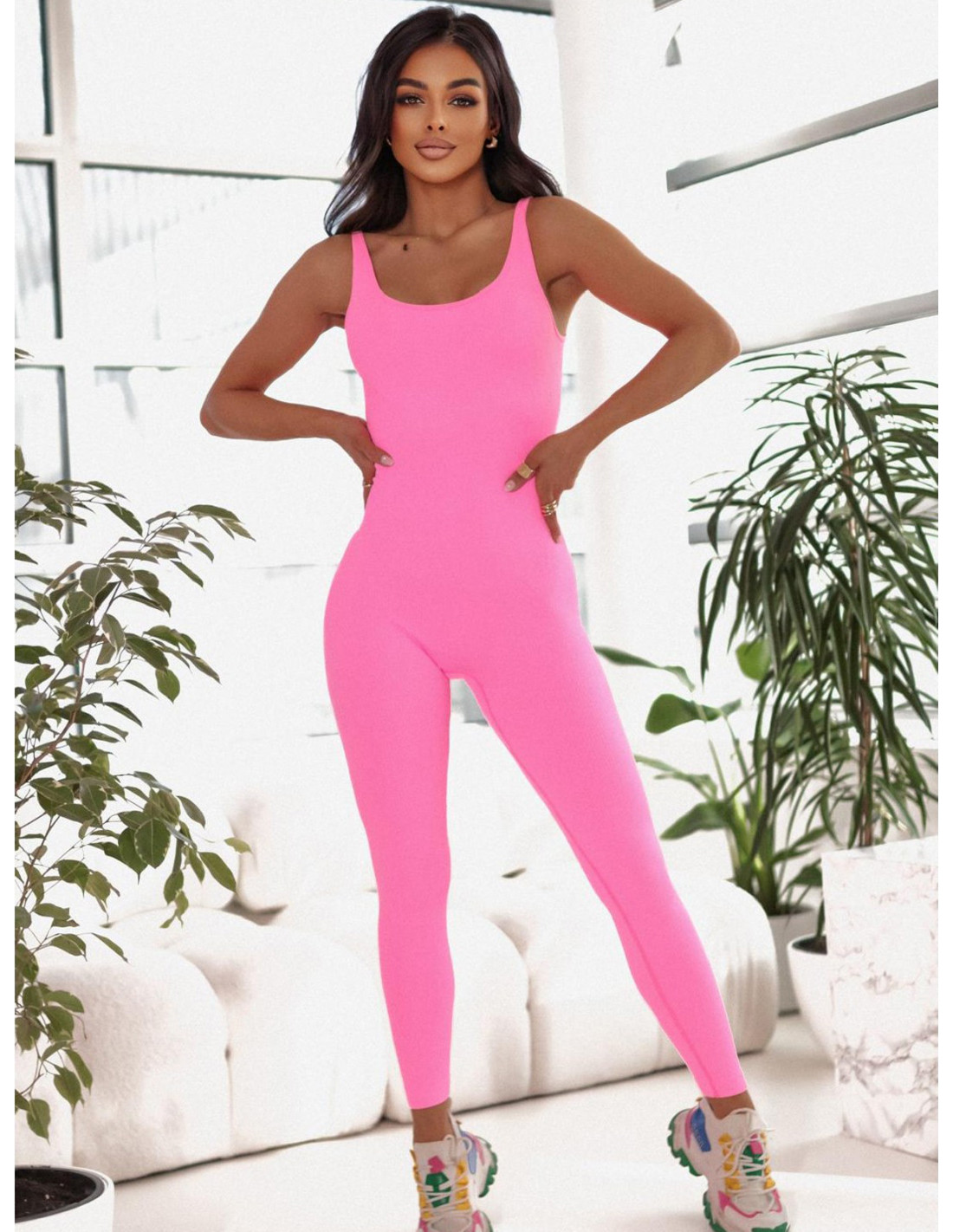 Sportowy kombinezon na ramiączkach ARRO - neon róż