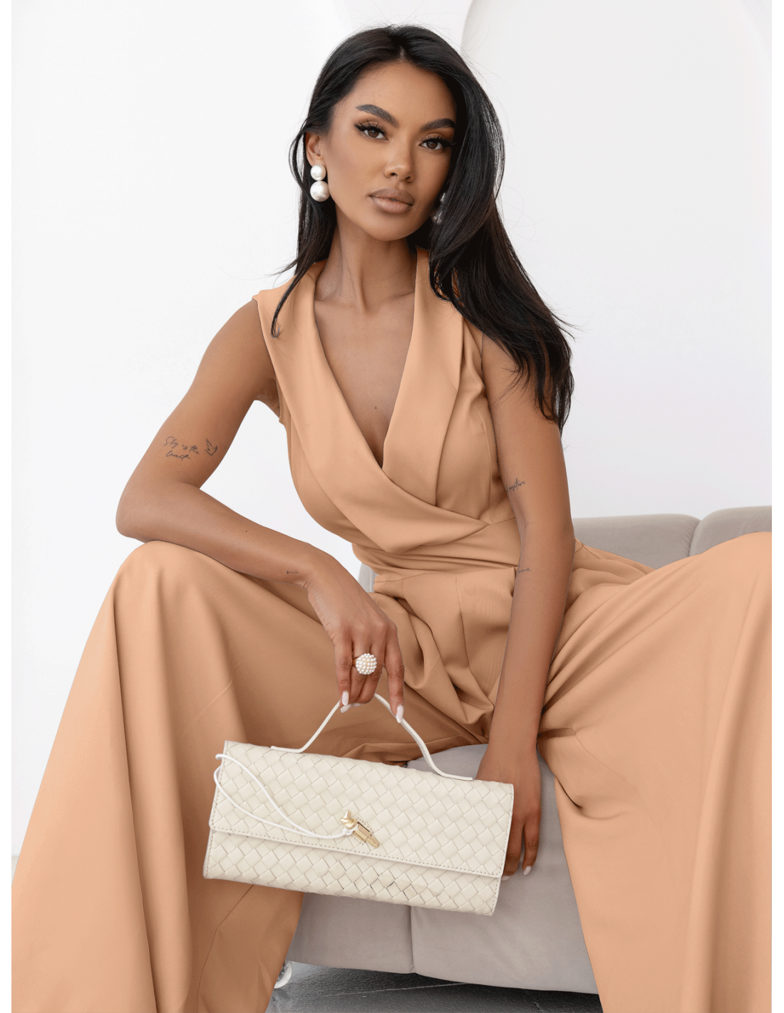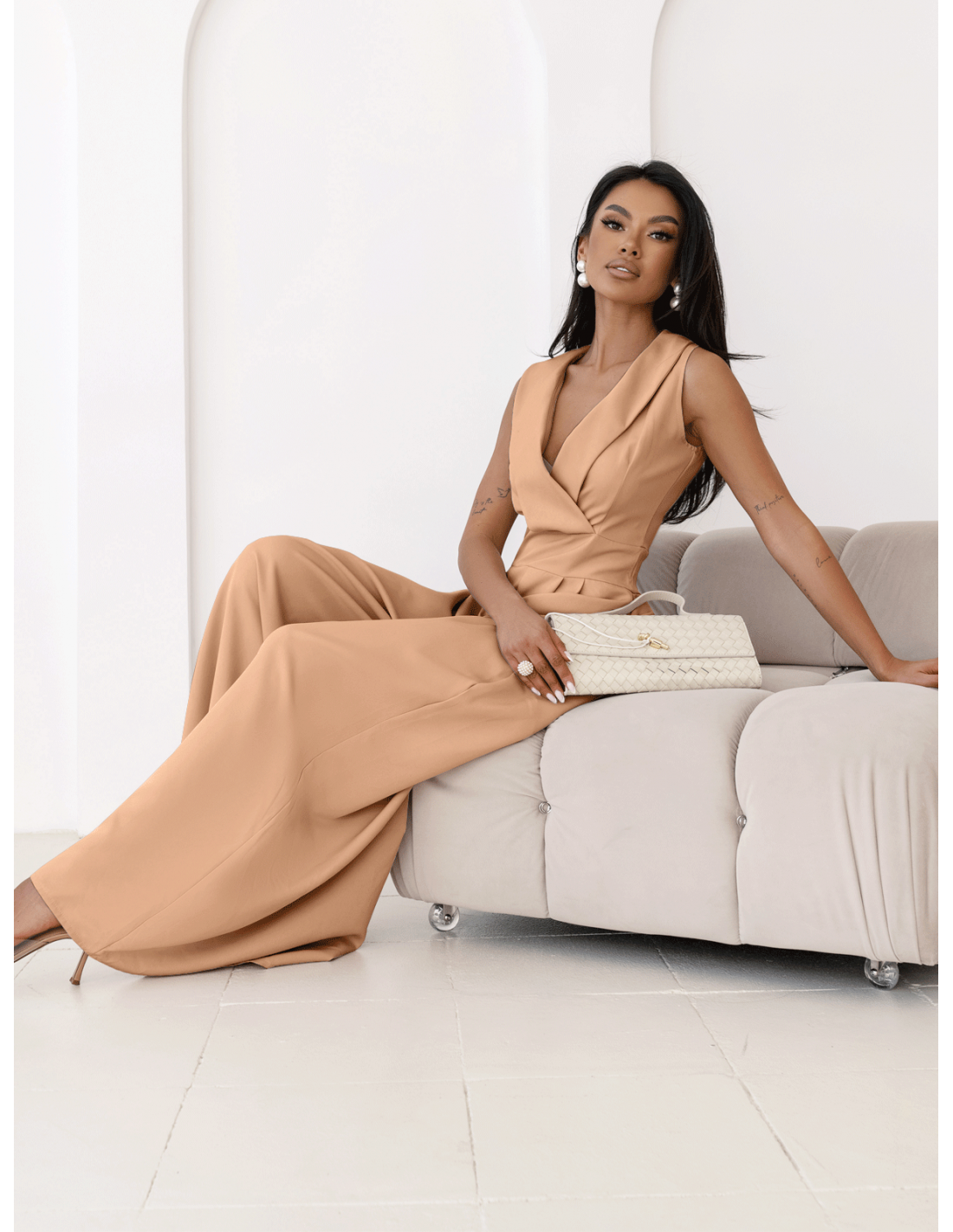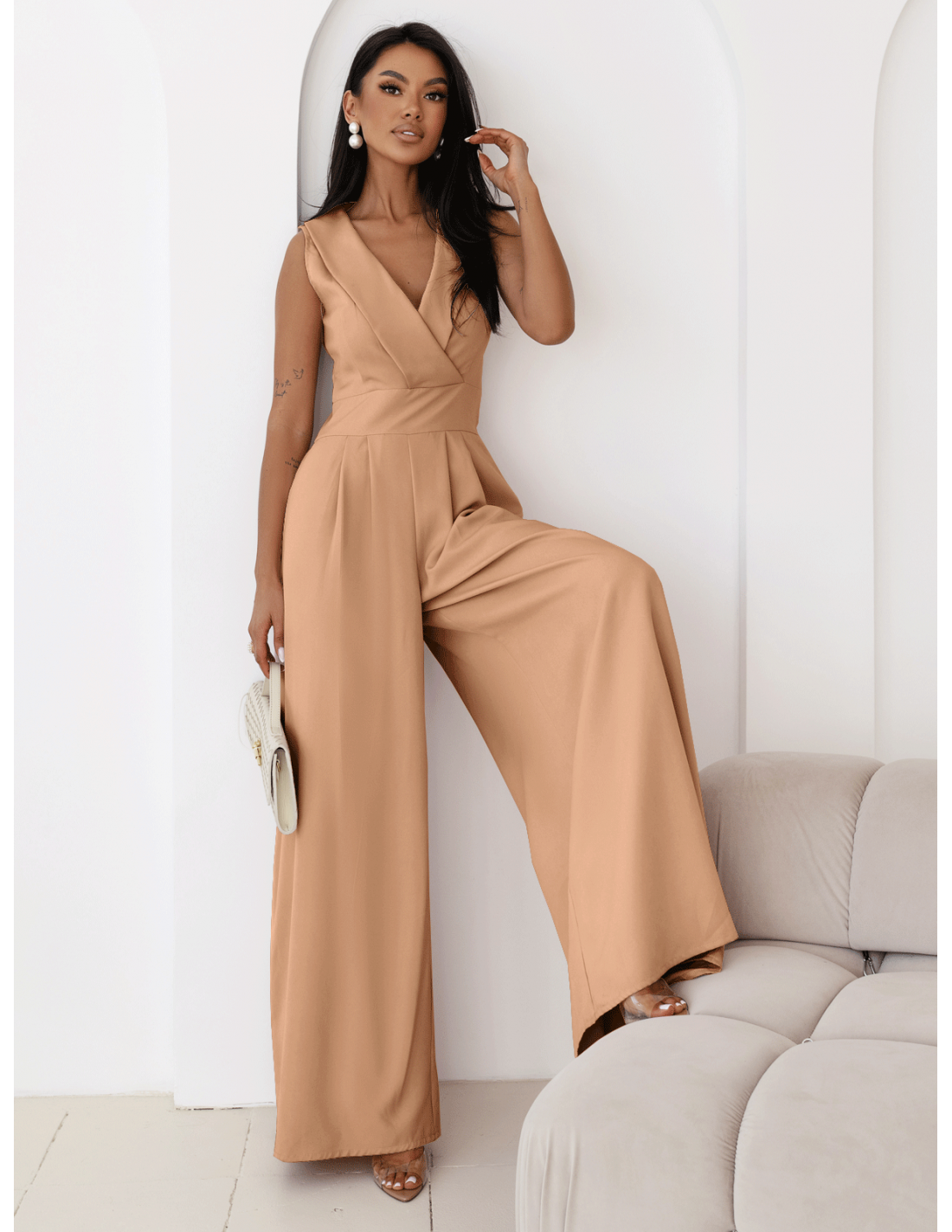 Kombinezon z szerokimi nogawkami ORMAN - cappuccino