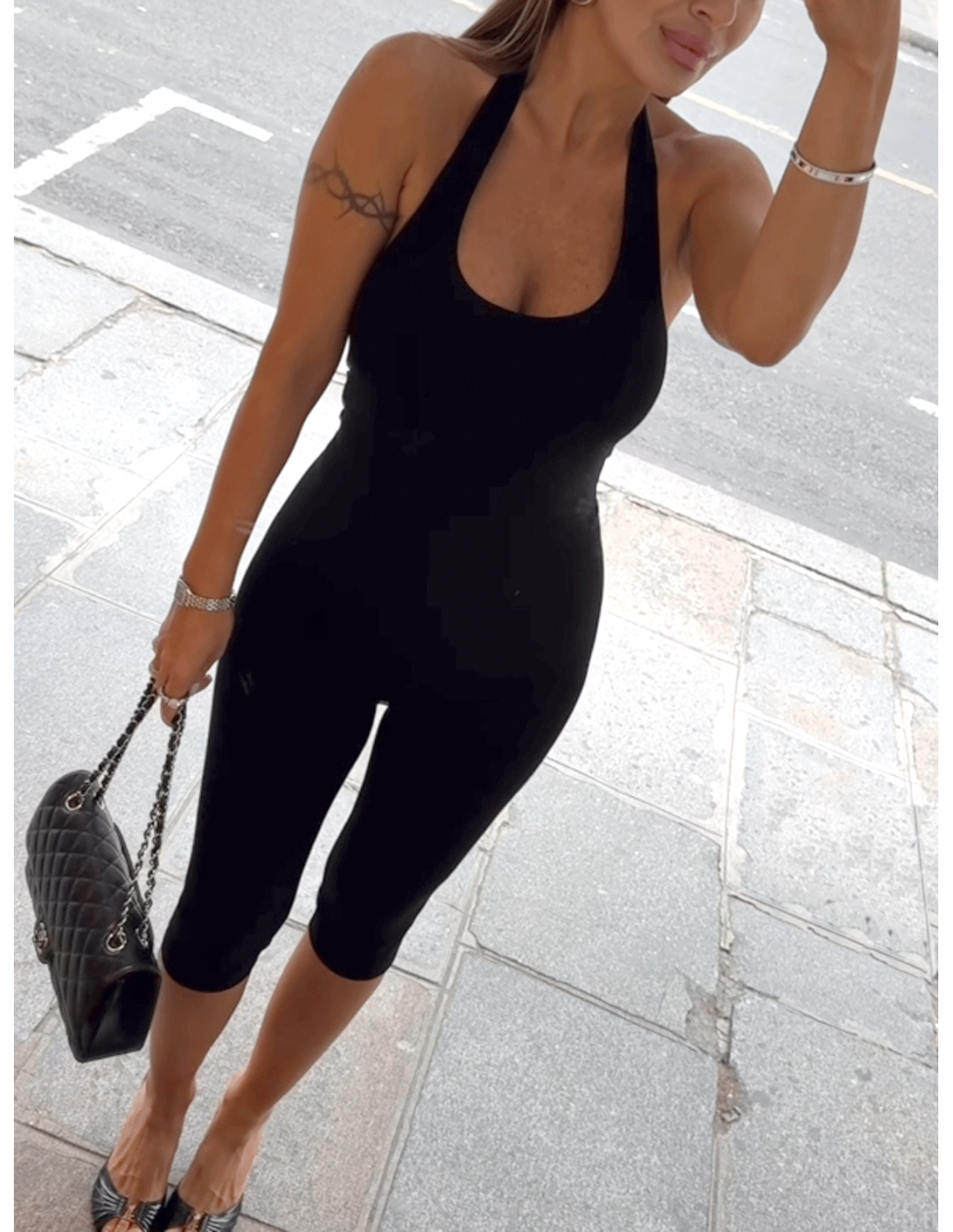 Elastyczny kombinezon, który perfekcyjnie modeluje sylwetkę i podkreśla jej naturalne kształty.
