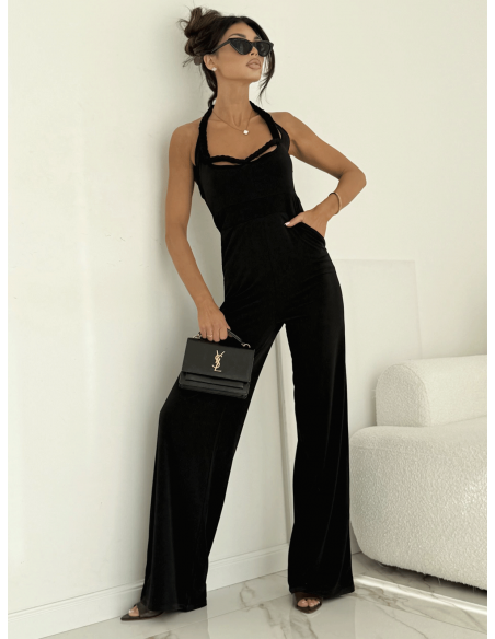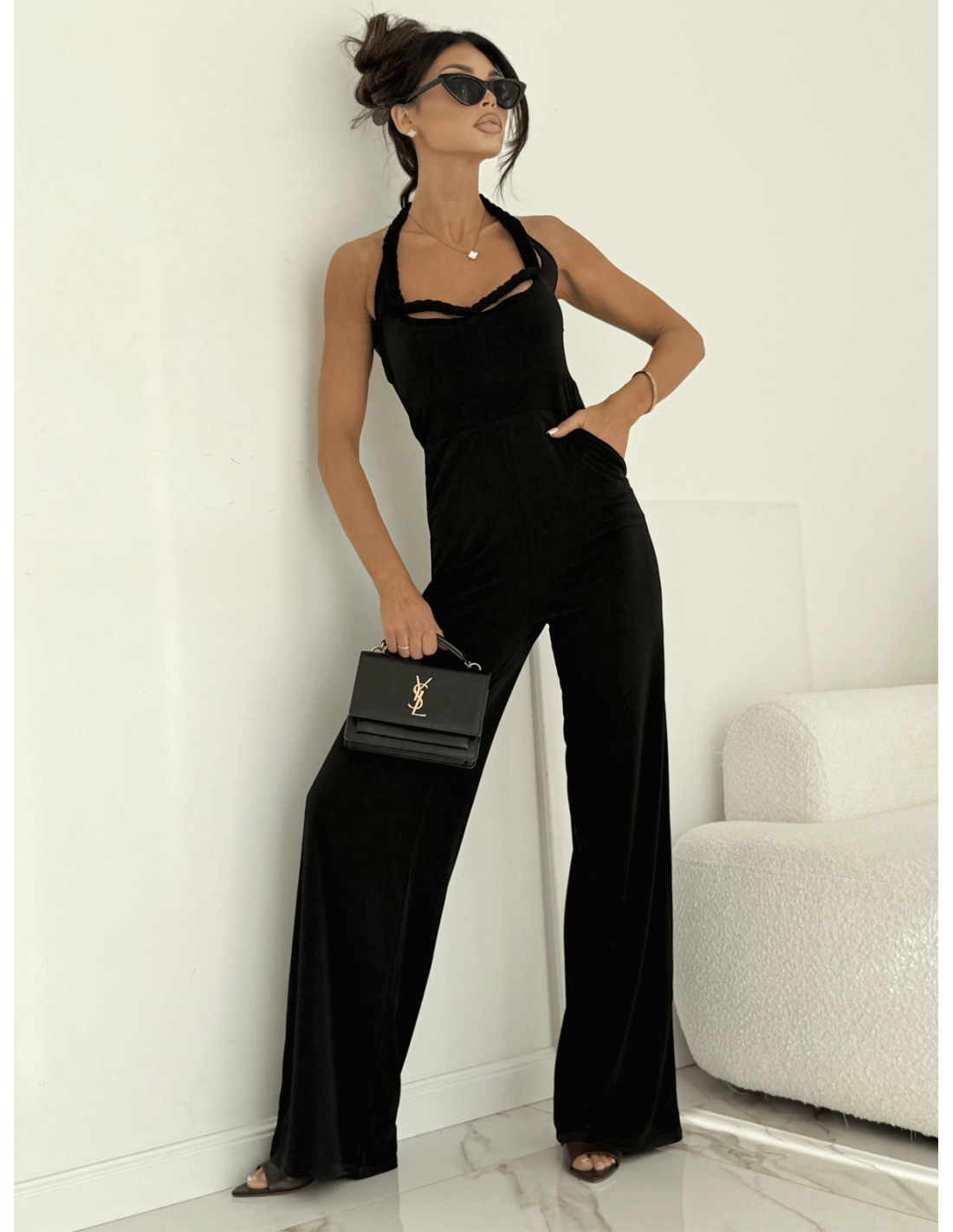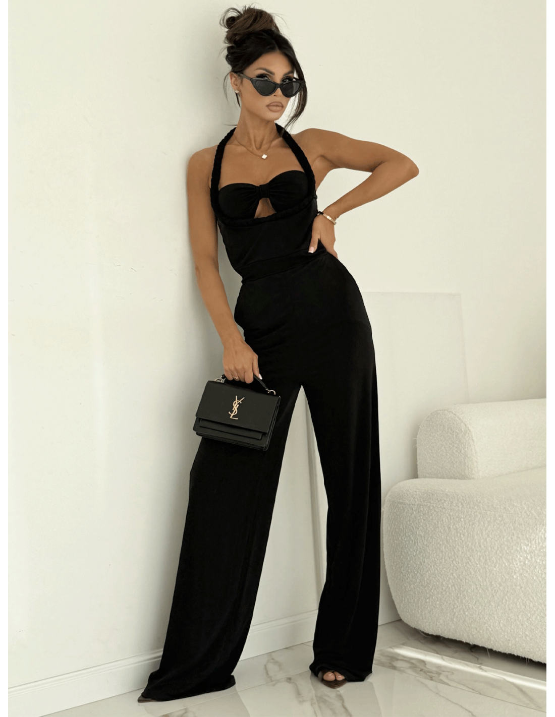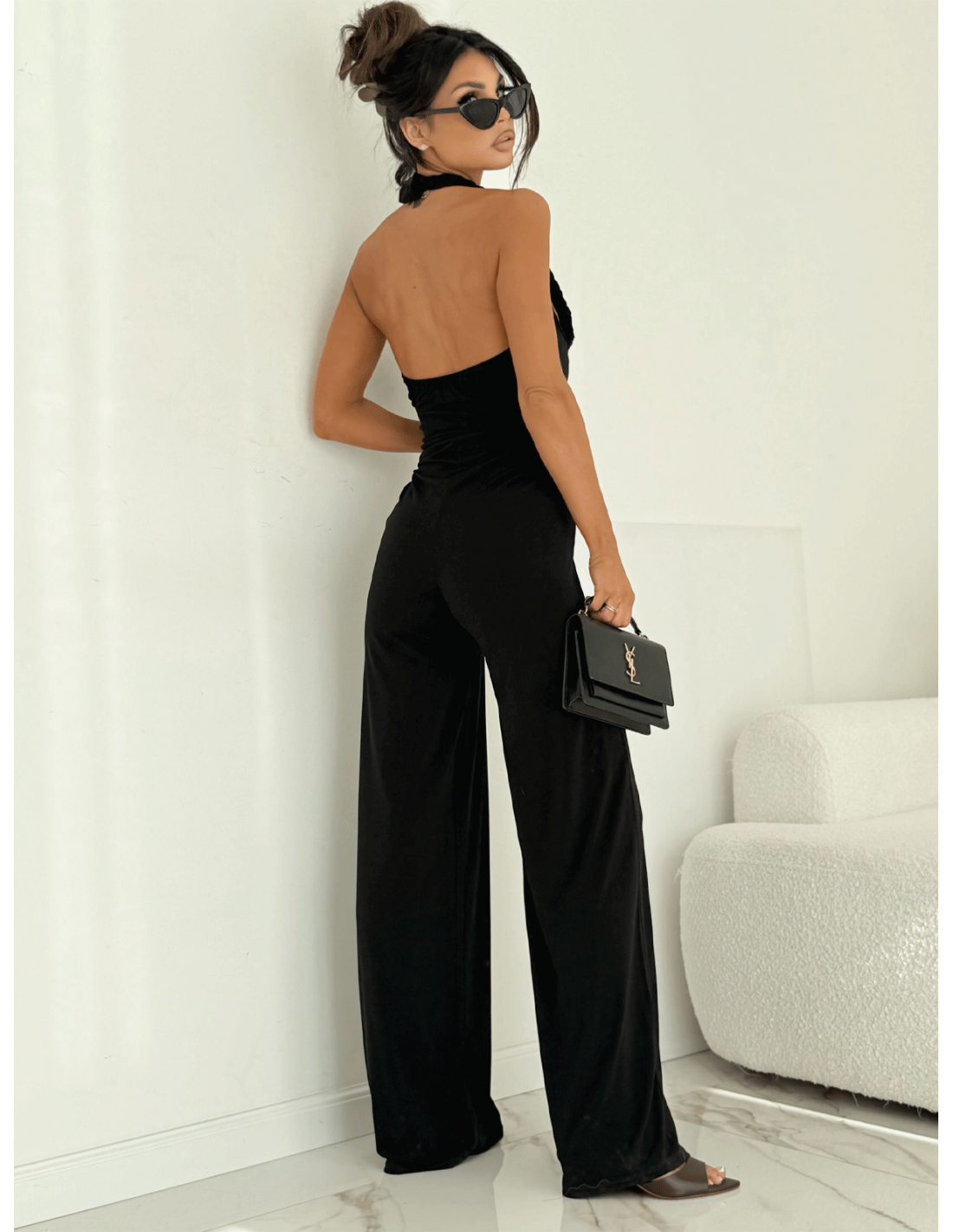Stylowy kombinezon z odkrytymi plecami ELORIA - czarny