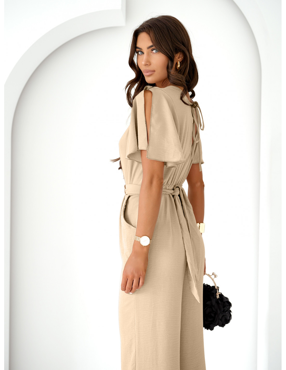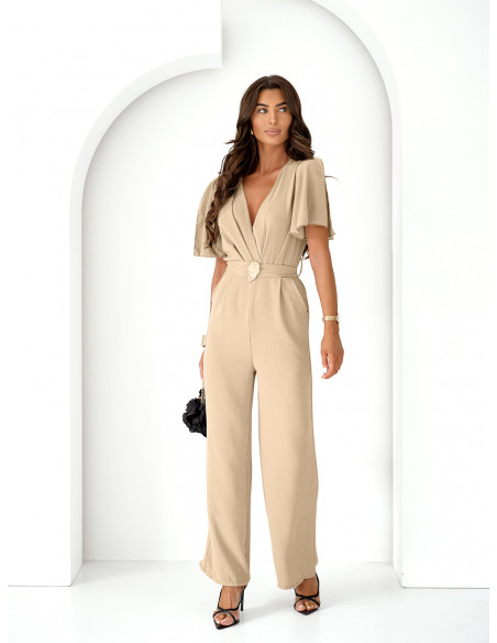 Stylowy kombinezon z szerokimi nogawkami DORELA - beżowy