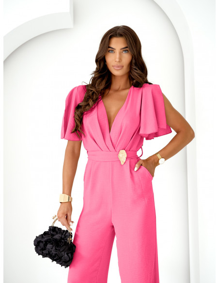 Stylowy kombinezon z szerokimi nogawkami DORELA - pudrowy róż