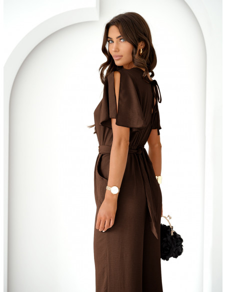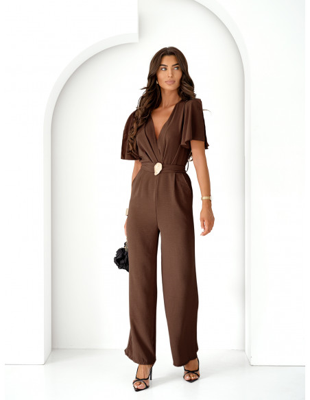 Stylowy kombinezon z szerokimi nogawkami DORELA - czekoladowy