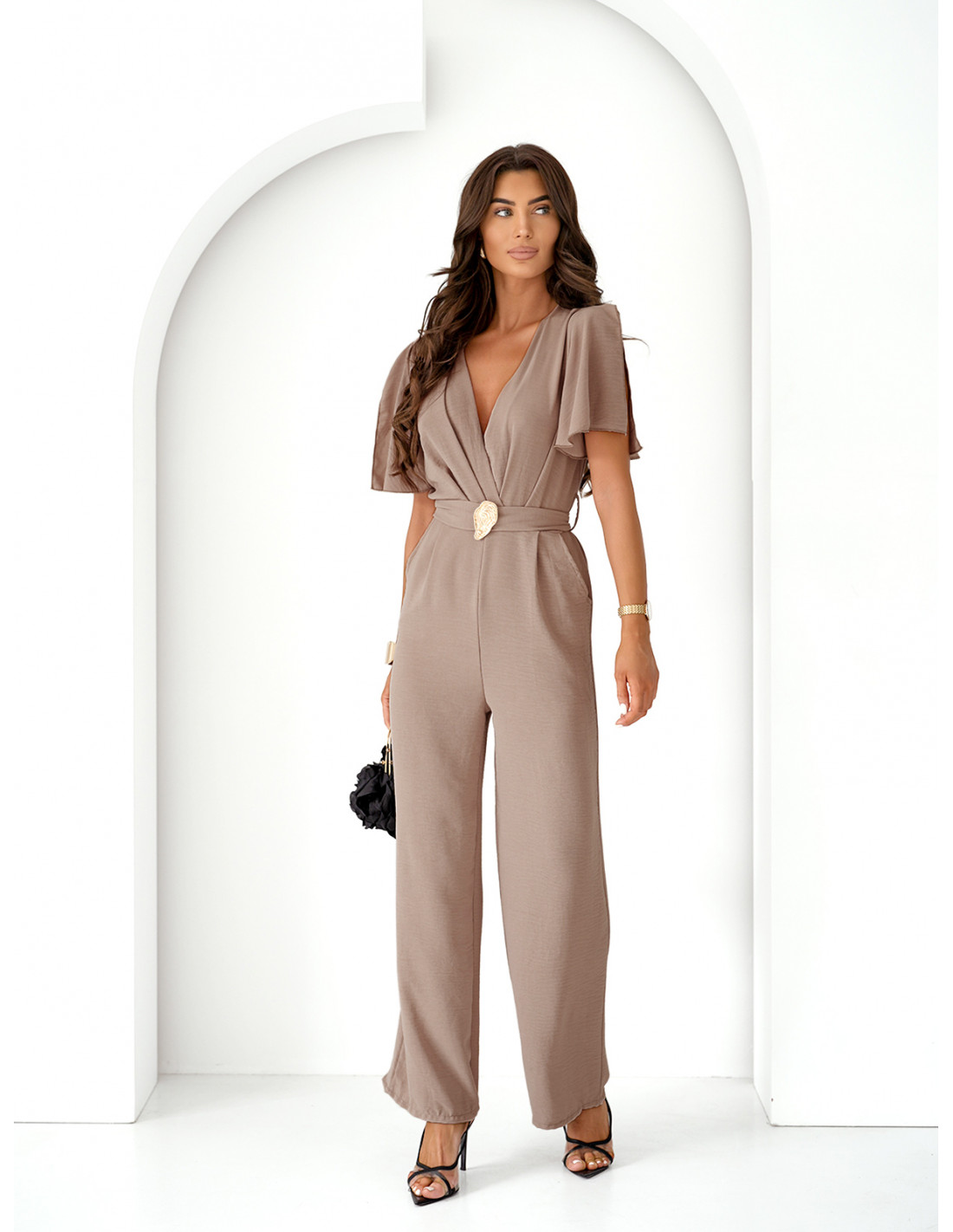 Stylowy kombinezon z szerokimi nogawkami DORELA - mocha mousse