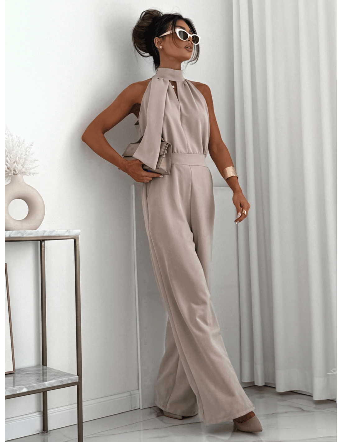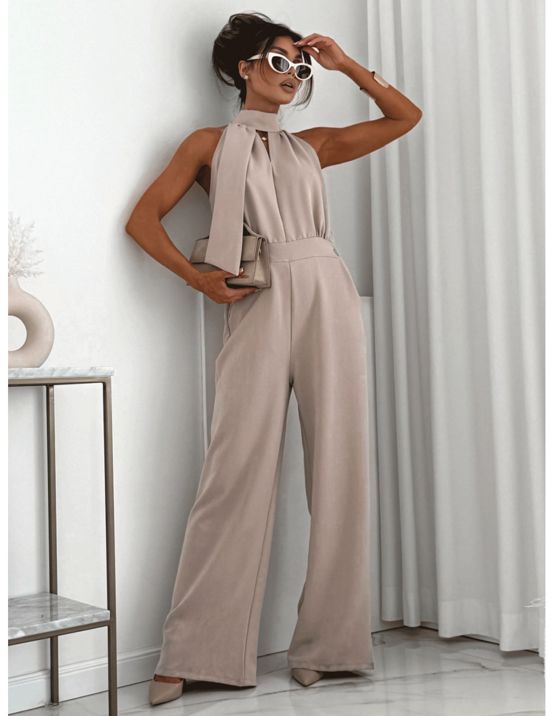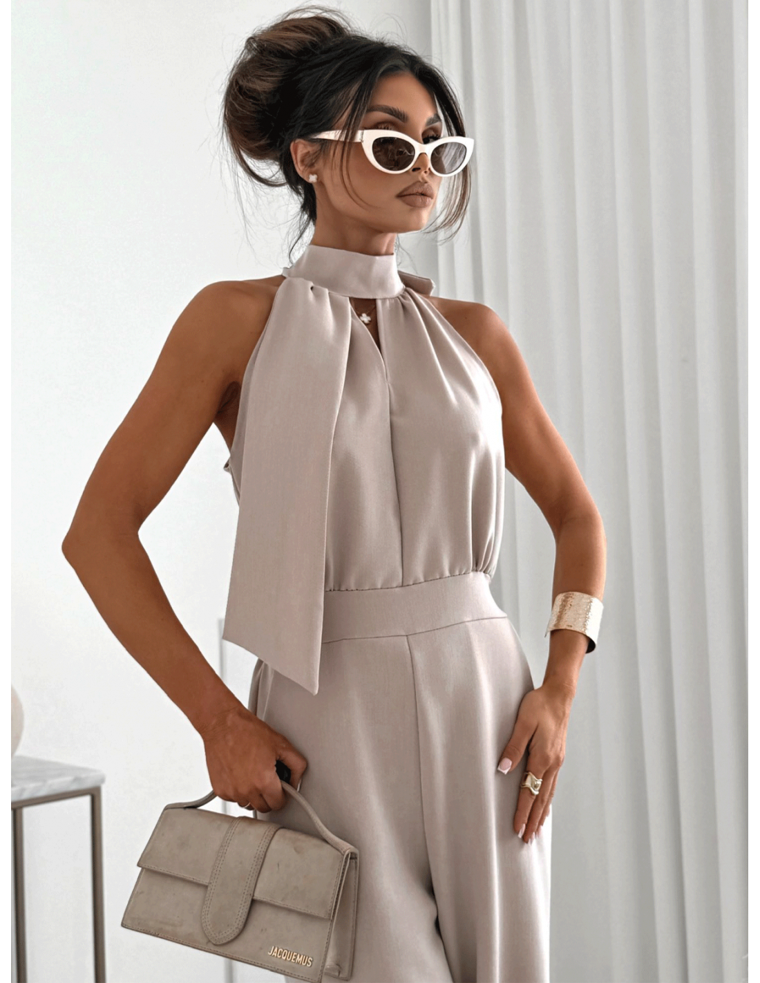 Elegancki kombinezon z szerokimi nogawkami SILVORA - mocca