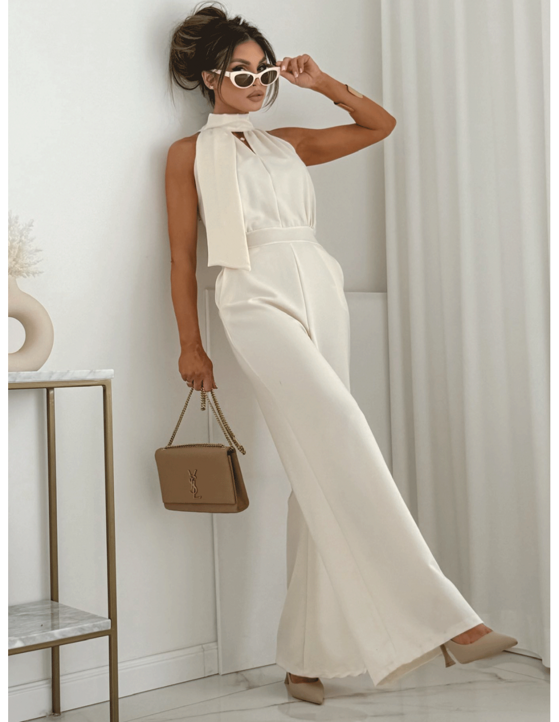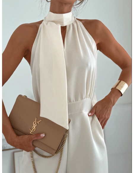 Elegancki kombinezon z szerokimi nogawkami SILVORA - marcepanowy