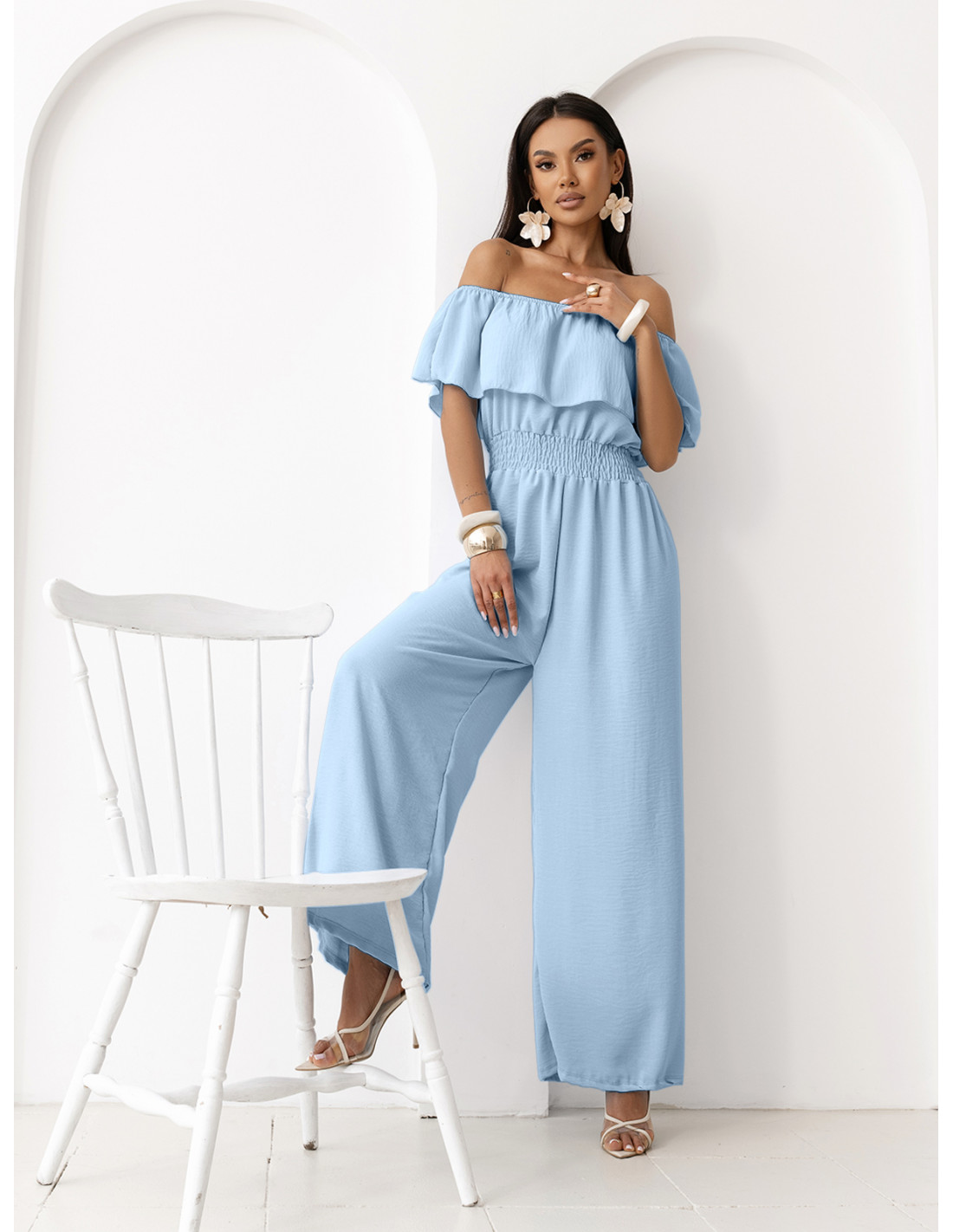 Ten wiskozowy błękitny kombinezon to idealne połączenie wygody i kobiecego stylu w nowoczesnym wydaniu.