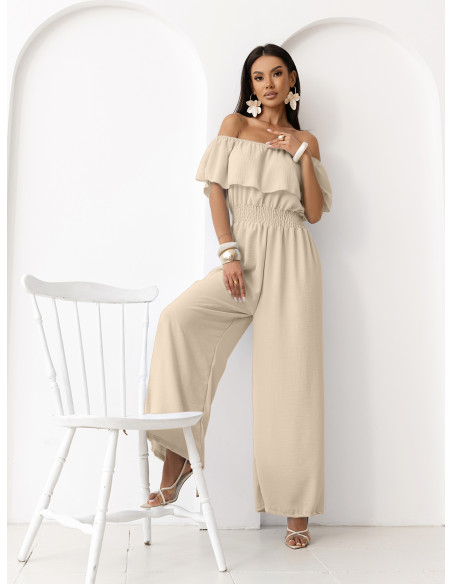 Ten wiskozowy beżowy kombinezon to idealne połączenie wygody i kobiecego stylu w nowoczesnym wydaniu.