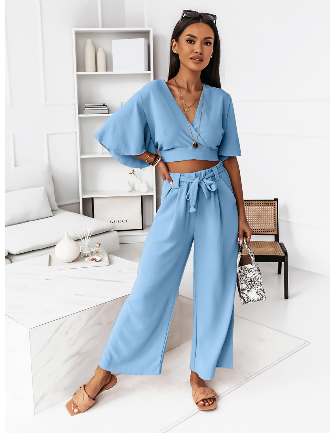 Komplet crop top ze spodniami - KONSTANCJA - błękitny