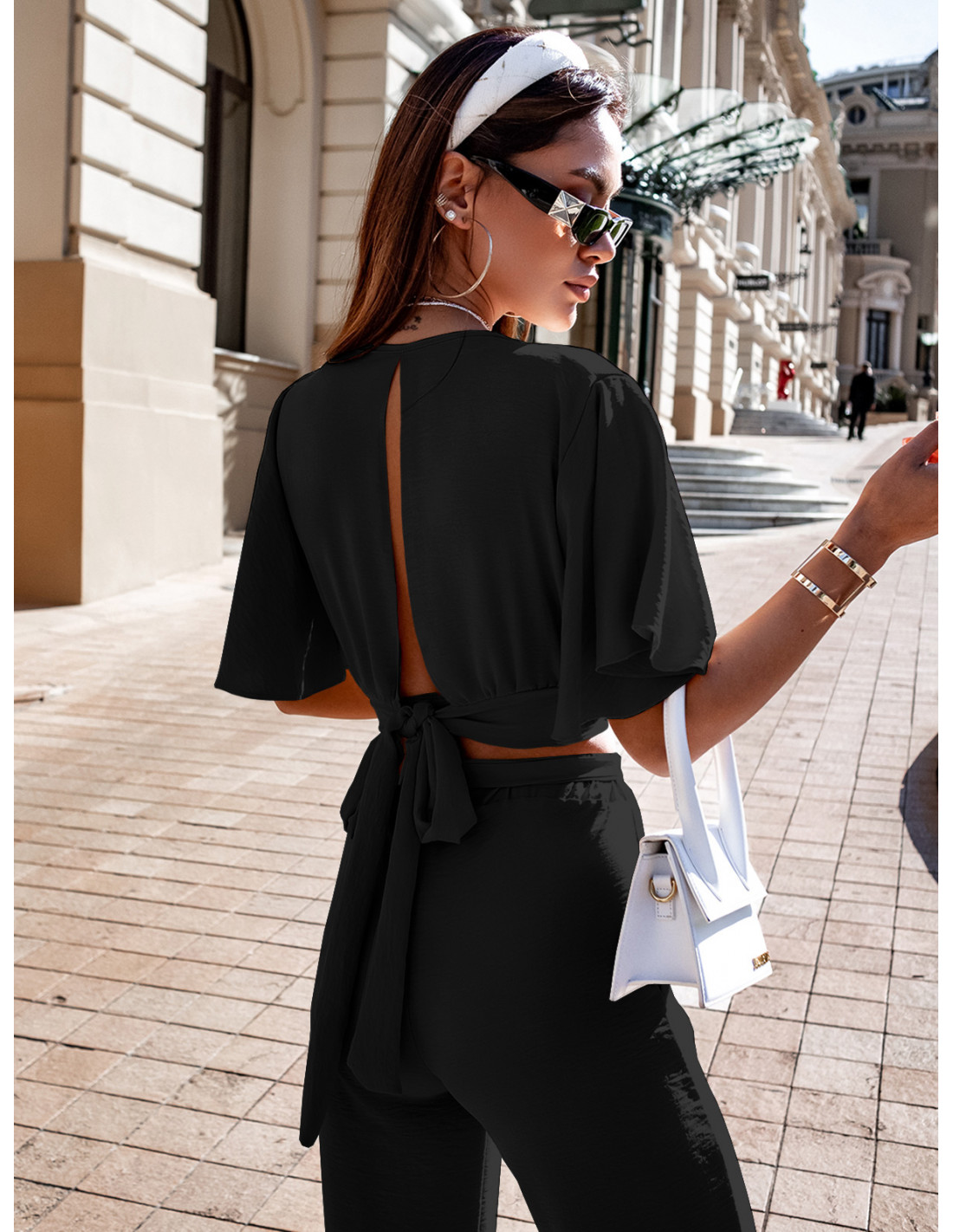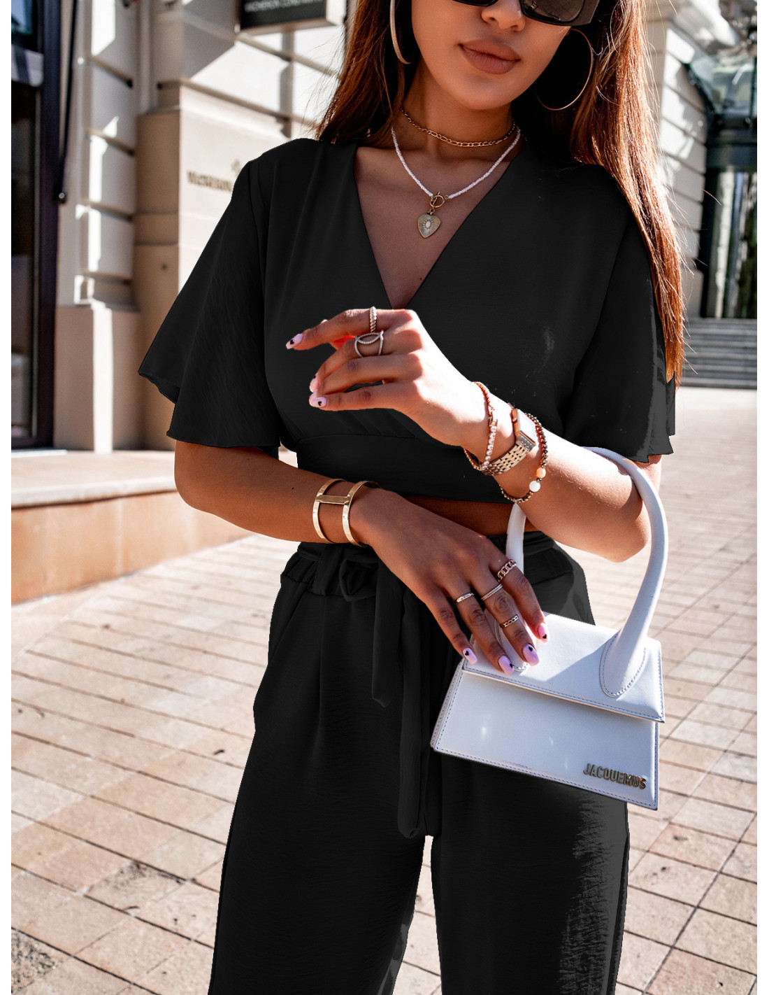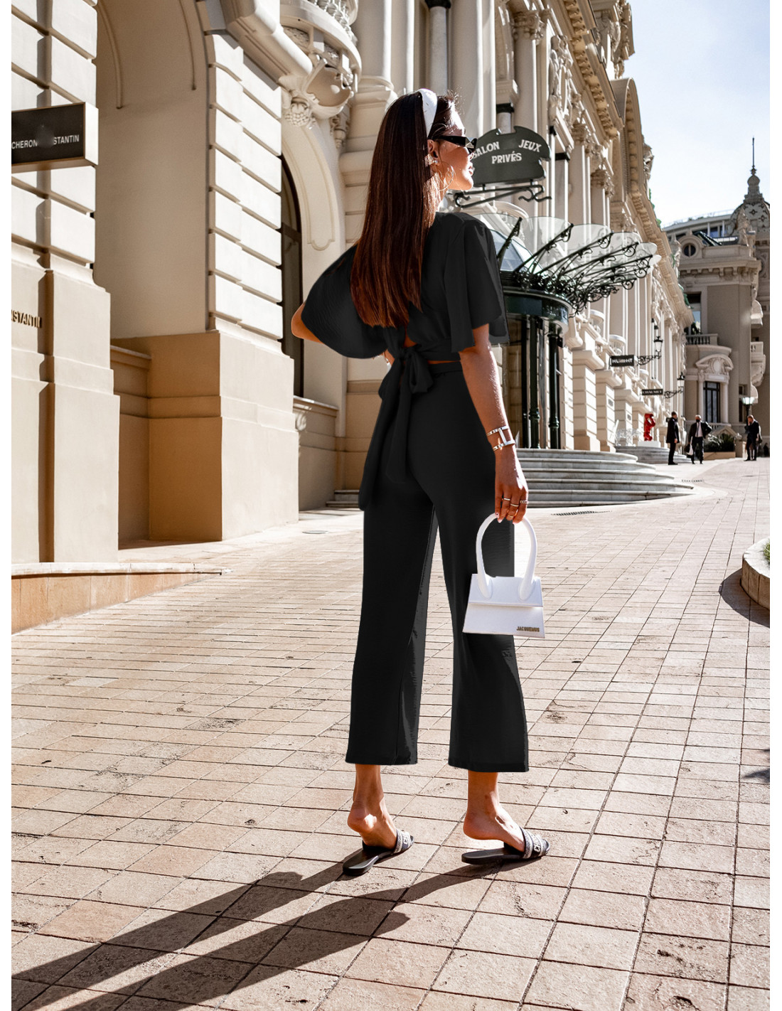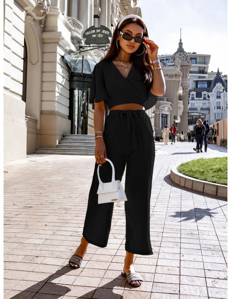Komplet crop top ze spodniami - KONSTANCJA - czarny