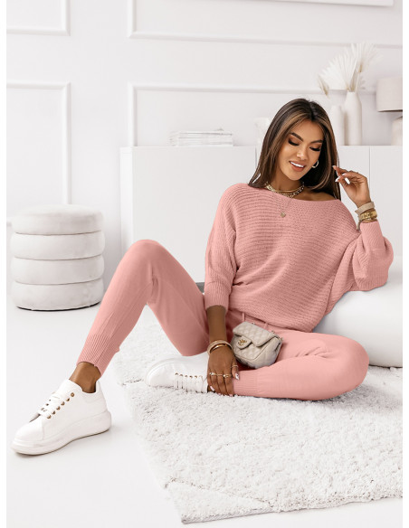 Dzianinowy komplet sweter i legginsy KAYAN - pudrowy róż