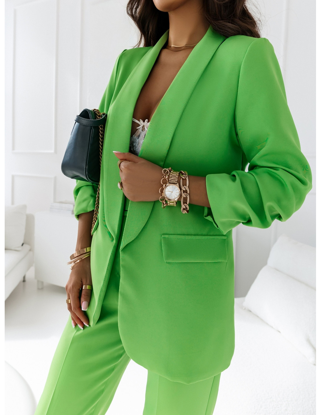 Modny garnitur marynarka i spodnie NAJAT - limonka