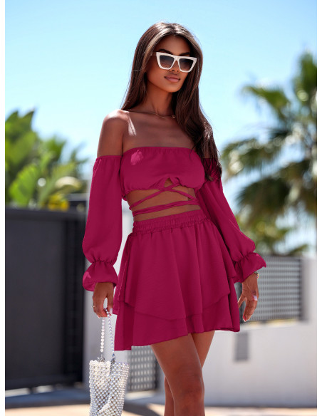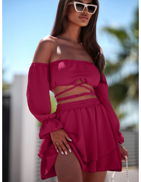 Komplet bluzka hiszpanka i spódniczka ASSALI - fuksjowy