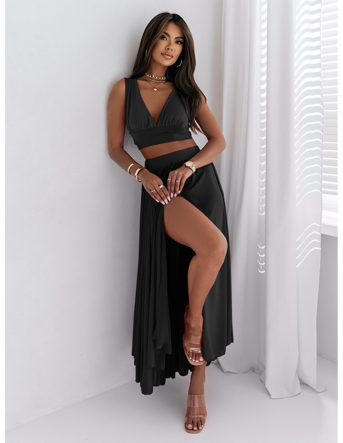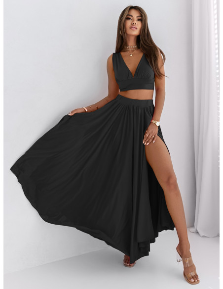 Komplet crop top i maxi spódnica DUO - czarny
