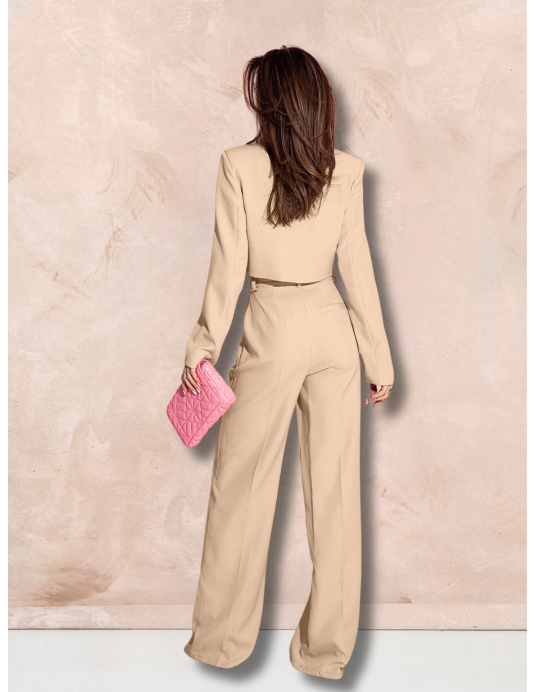 Garnitur z szerokimi spodniami YUKARI - beżowy