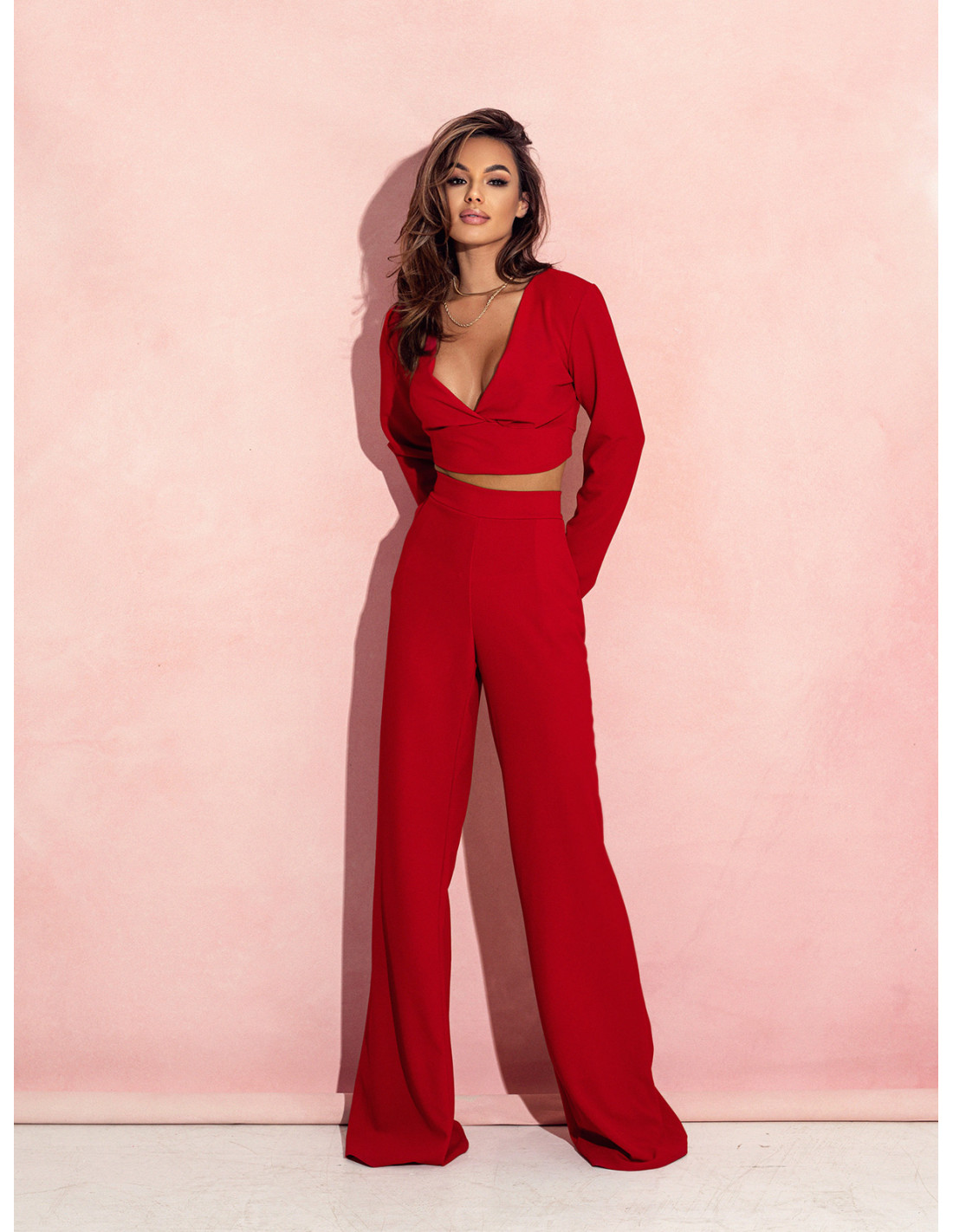 Elegancki komplet ze spodniami FAIZA - czerwony