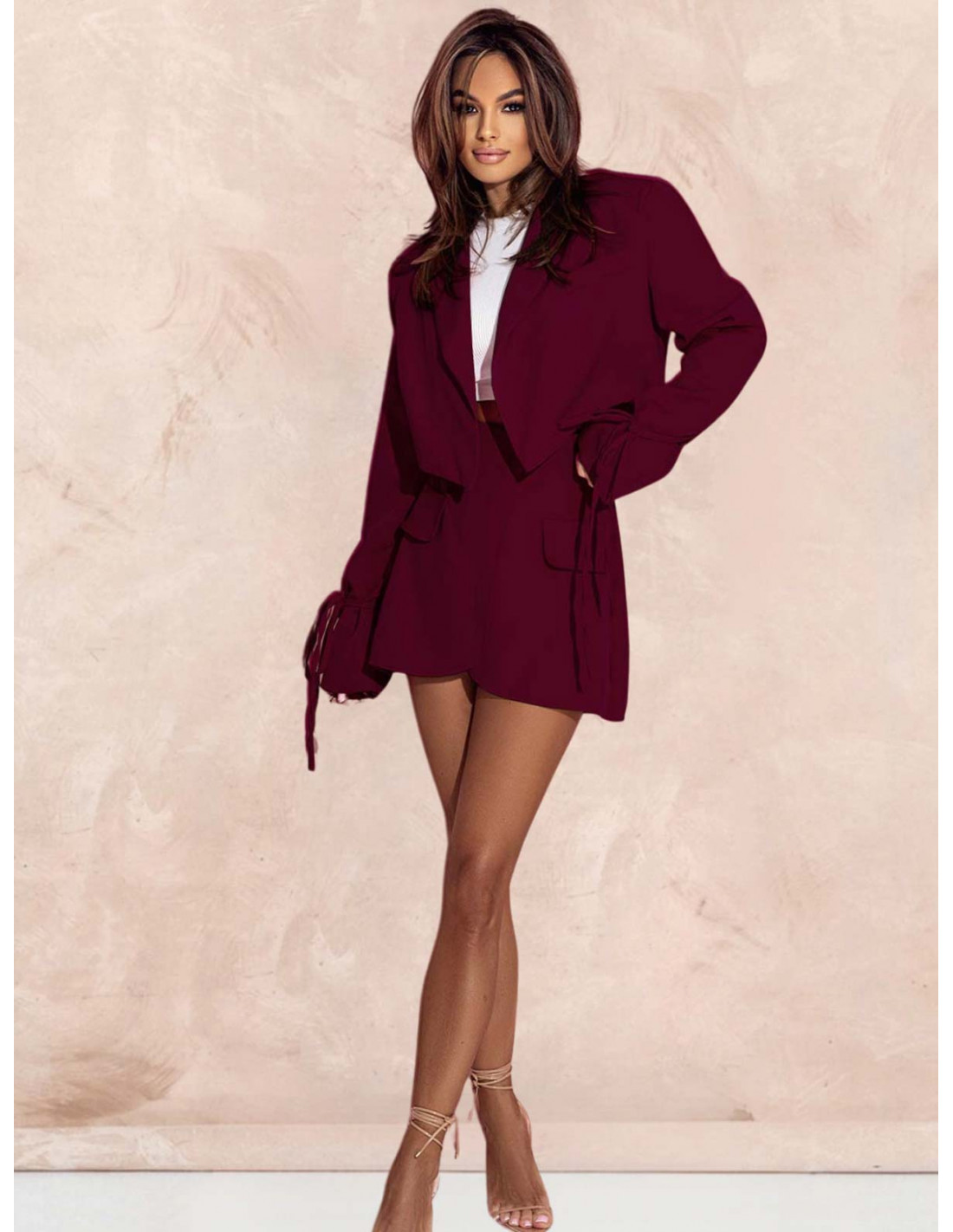 Komplet marynarka i spódnico-spodenki HOLLI - bordowy