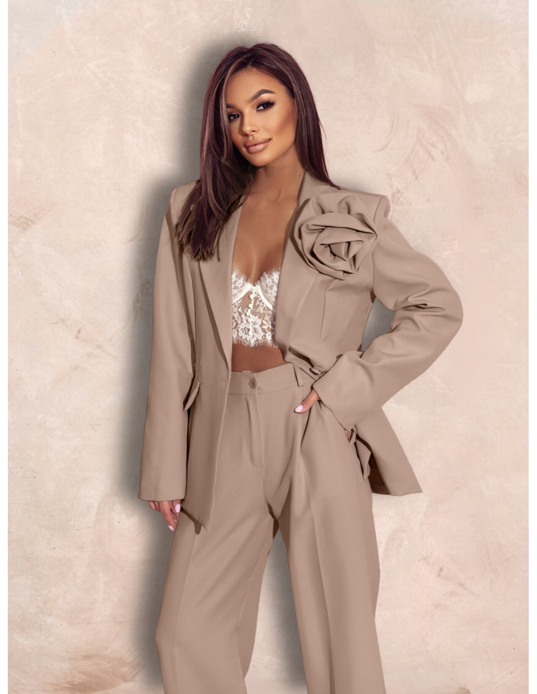 Ten garnitur w kolorze cappuccino to więcej niż ubranie – to wyraz Twojej indywidualności i pewności siebie.