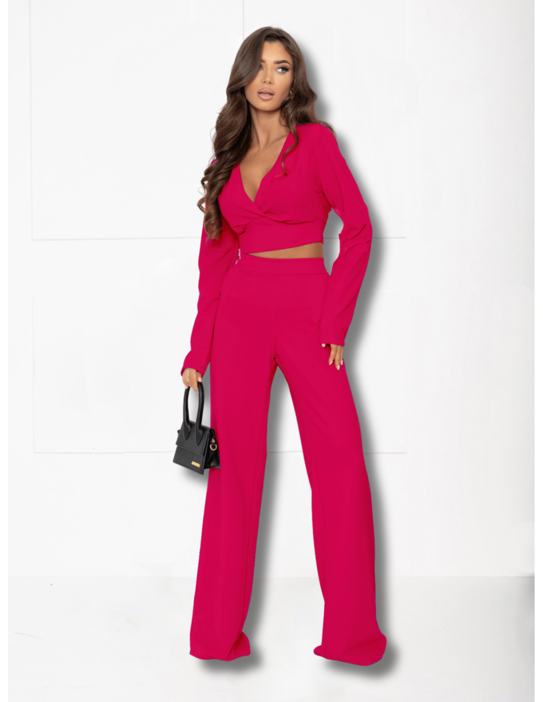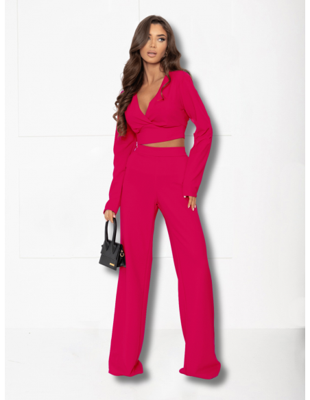 Elegancki komplet ze spodniami FAIZA - fuksjowy