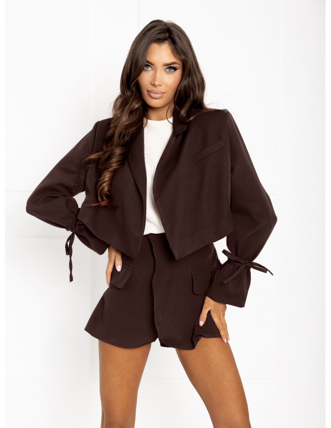 Komplet marynarka i spódnico-spodenki HOLLI - czekoladowy