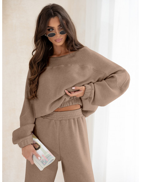 Komplet dzianinowy z szerokimi spodniami MILENA - cappuccino