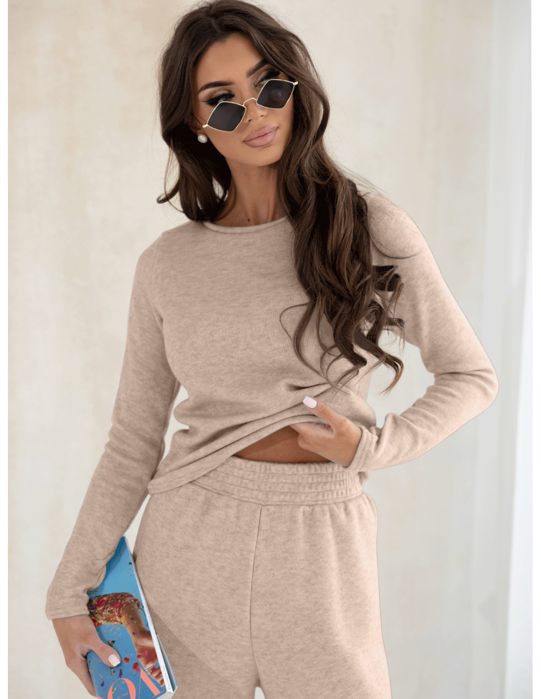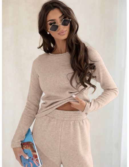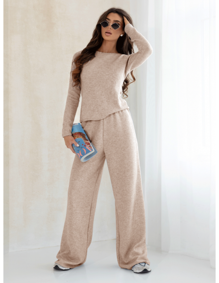 Komplet dzianinowy z szerokimi spodniami CELESTE - cappuccino